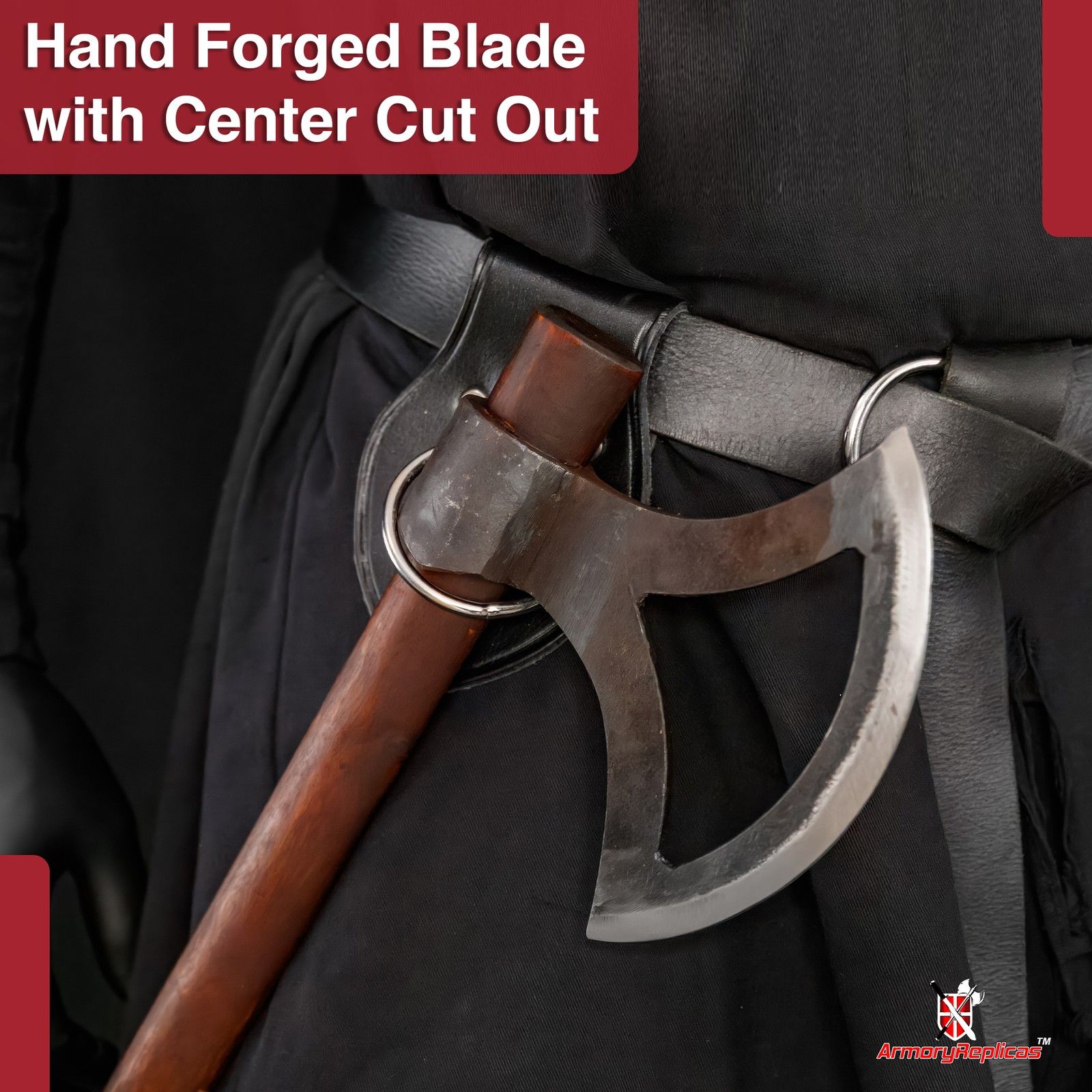 Heartless Viking Medieval Battle Axe Carbon Steel Center Cutout with Sheesham Heartwood Handle