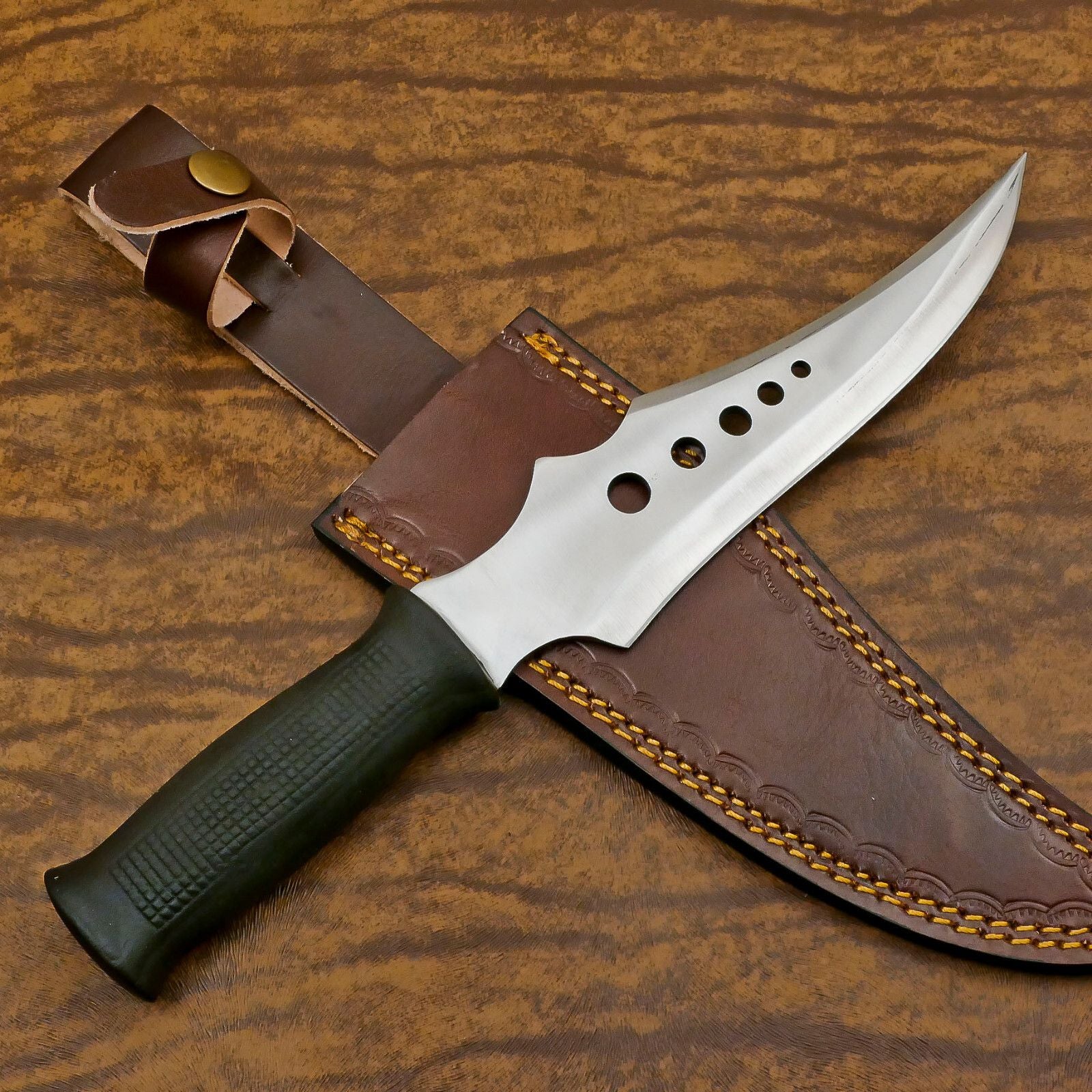 Conquer the outdoors with this Heavy-Duty D2 Bowie Knife, featuring a 12-inch full tang blade expertly handcrafted from premium D2 tool steel. Known for its exceptional hardness, edge retention, and toughness, this knife is built for hunting, camping, survival, and sporting adventures. The large, sharp blade excels at chopping, cutting, and field dressing, providing unmatched precision and reliability for any outdoor activity.The ergonomic plastic handle is designed for comfort and a secure grip, even in wet or challenging conditions. Lightweight yet durable, the handle ensures excellent control during heavy-duty tasks while reducing hand fatigue. Full tang construction guarantees maximum balance, strength, and stability, making this Bowie knife a dependable tool for the rugged outdoors.