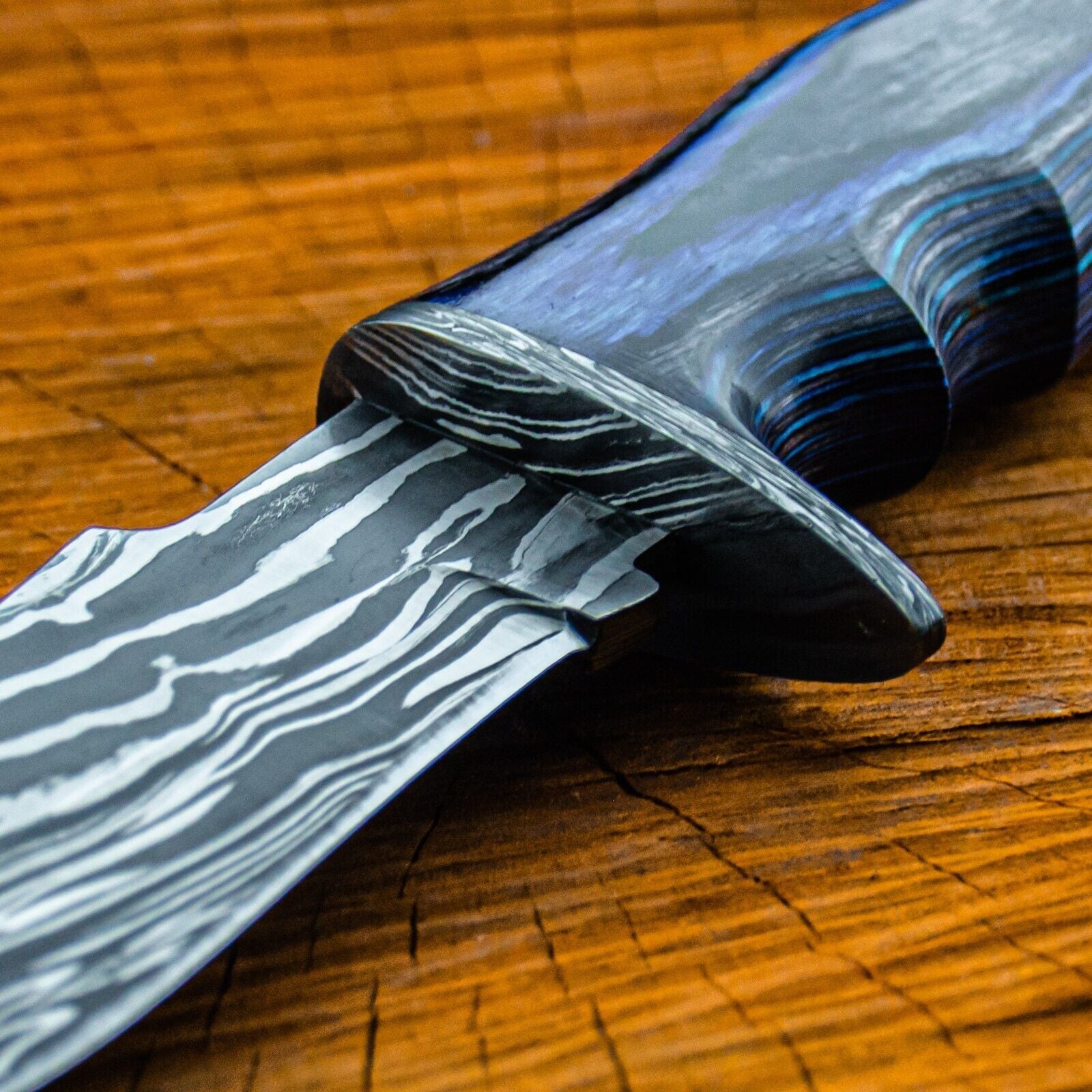 The Heritage Forge 10 Inch Damascus Steel Bowie Knife is a masterfully handcrafted blade, ideal for hunting, camping, and outdoor adventures. This robust fixed-blade knife is forged using traditional techniques, combining 1095 and 15N20 high carbon steels into a beautiful layered Damascus pattern. With a 5-inch blade and 5-inch handle, it provides perfect balance for control and precision.