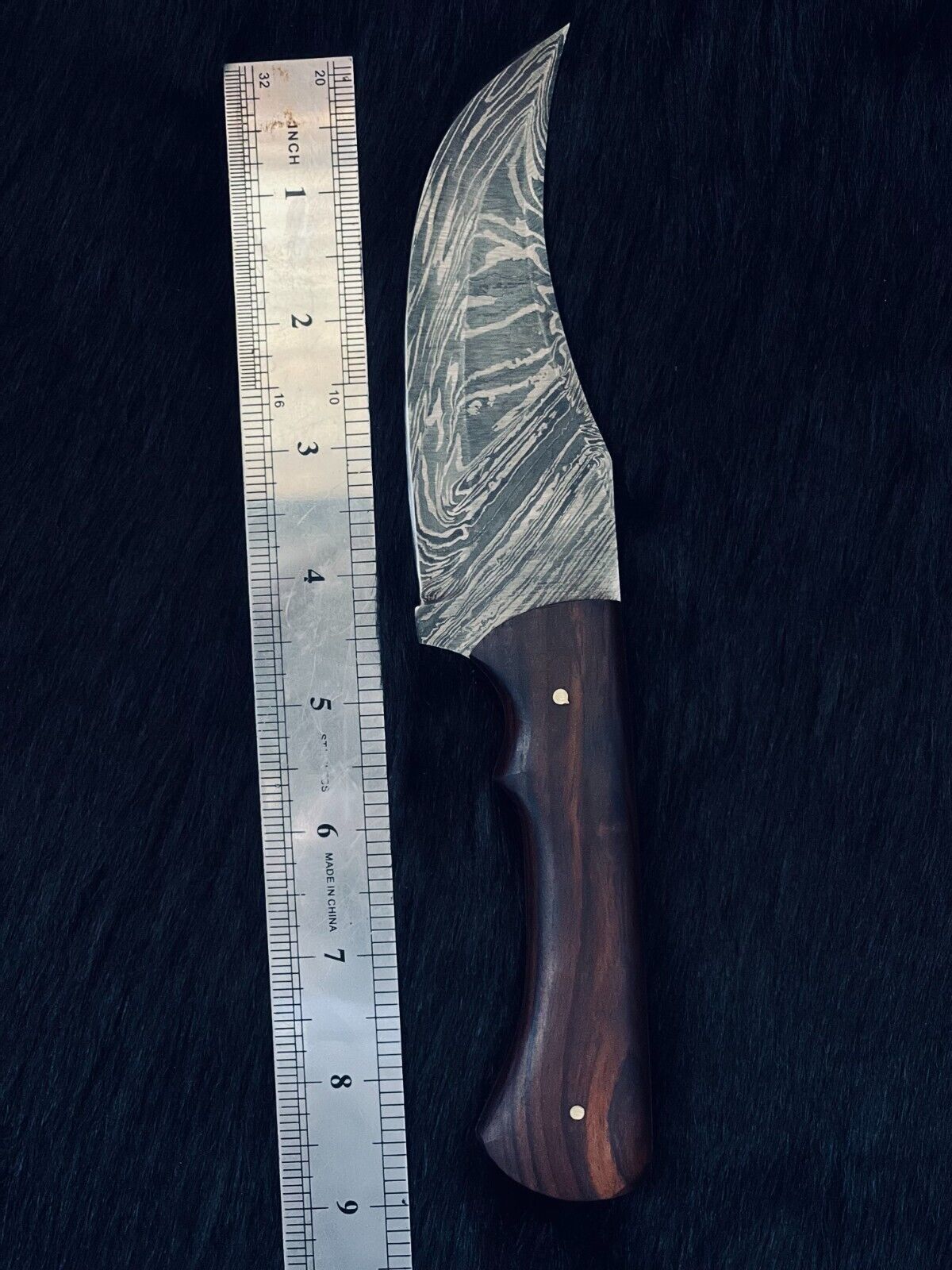 Heritage Forge 10 Inch Twist Damascus Steel Skinning Knife with Wood Handle