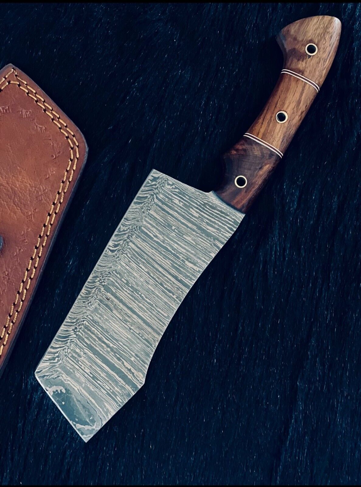 Introducing the Heritage Forge 11 Inch Custom Handmade Damascus Steel Cleaver Knife – a rugged blend of craftsmanship and utility. Designed for precision and durability, this knife is hand forged from high carbon 1095 and 15N20 Damascus steel, featuring a thick 4mm blade with 512 visible layers that create a stunning wave-like pattern and unmatched cutting performance. Whether you're using it for camping, hunting, survival, or as a striking display piece, this cleaver is a standout choice.