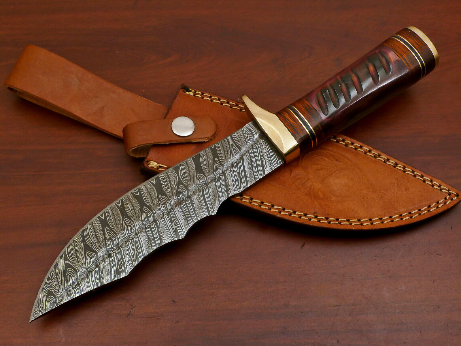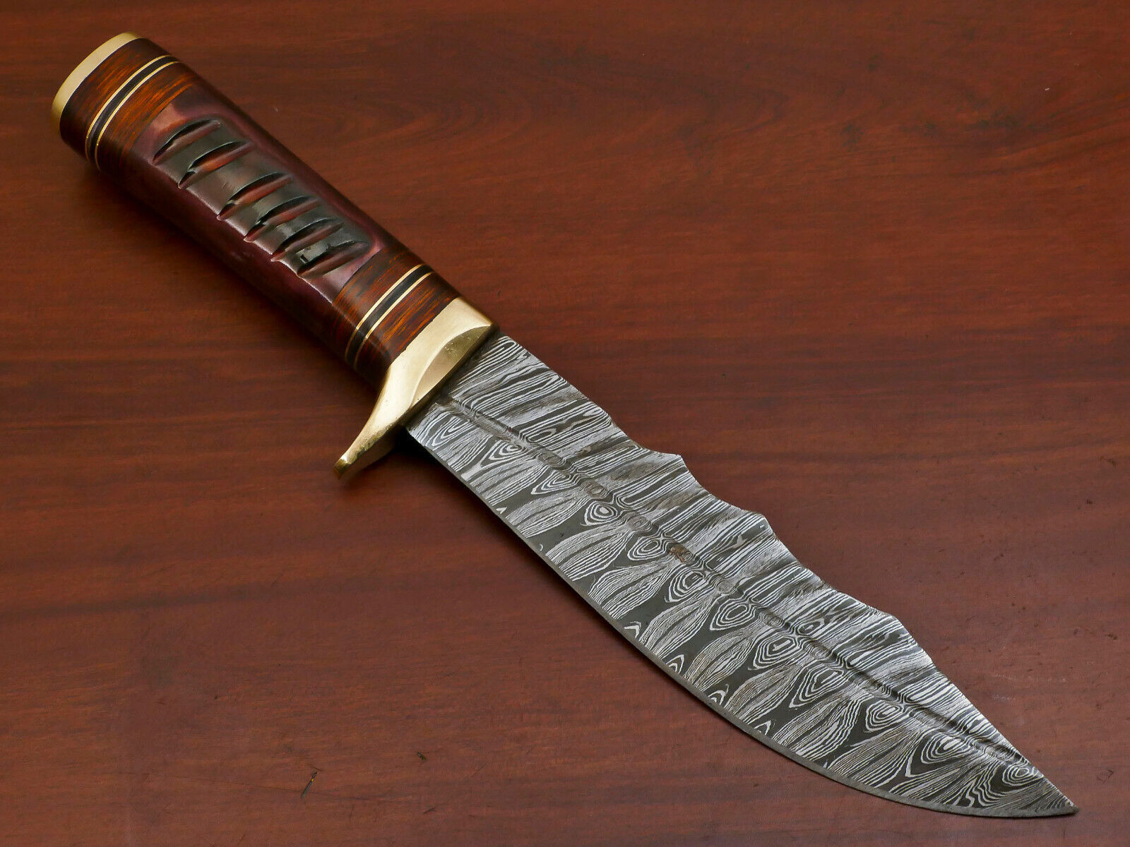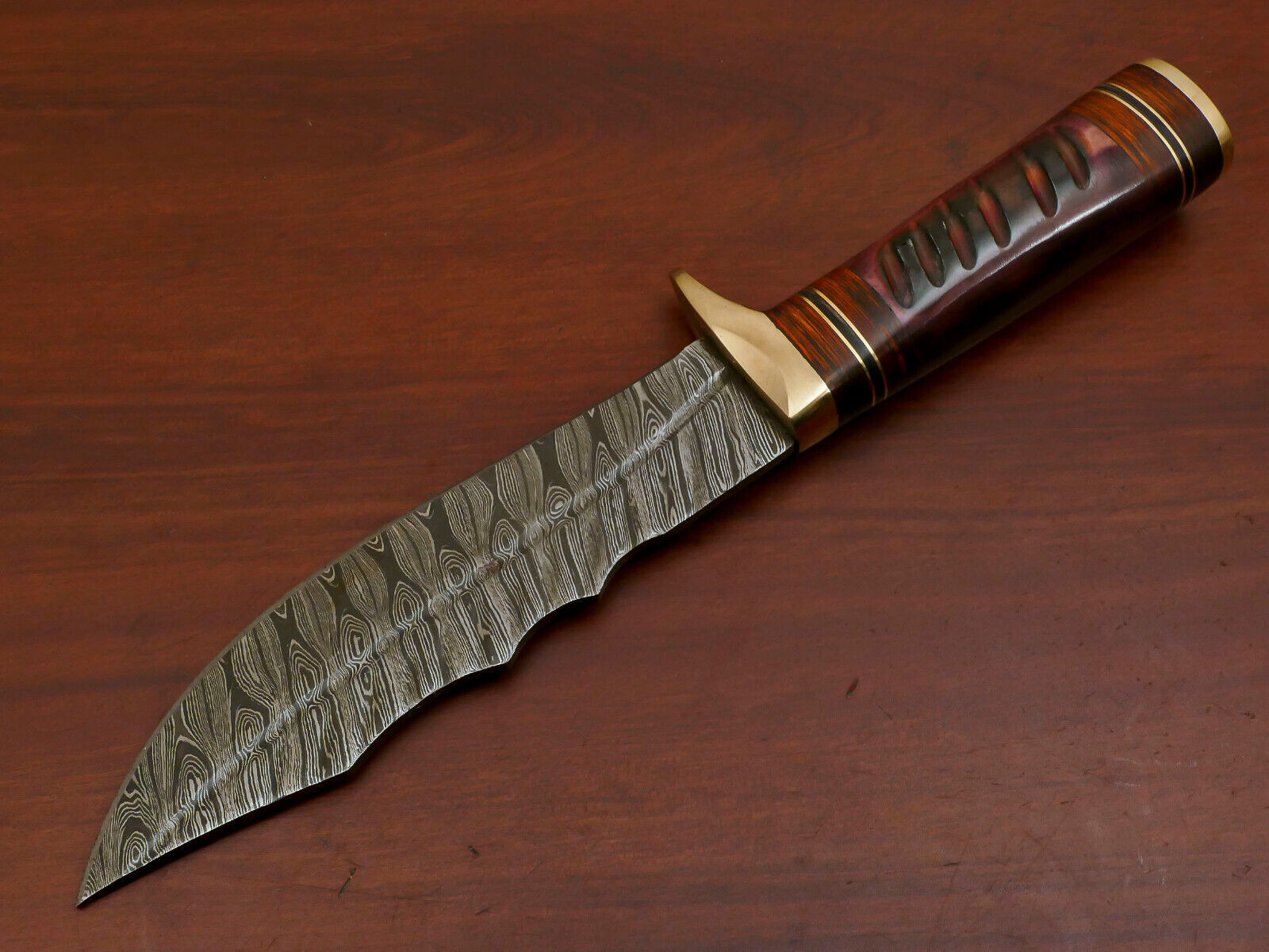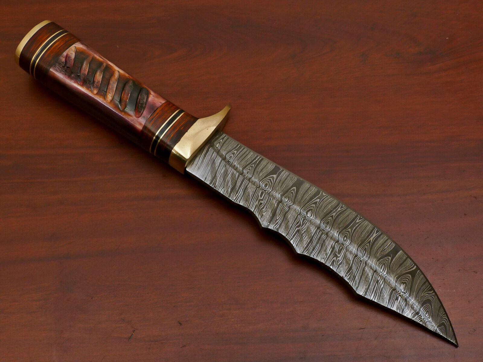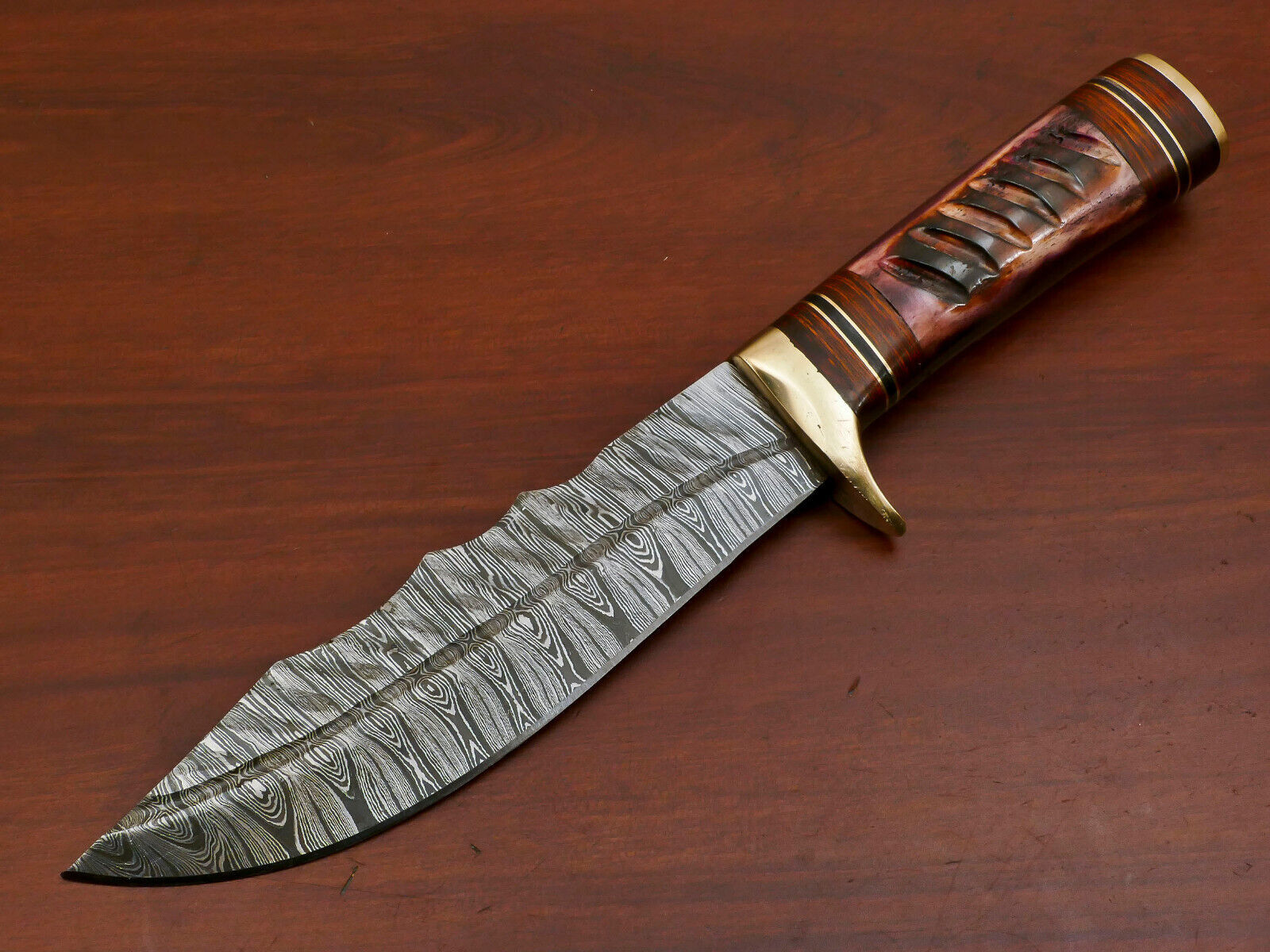 Heritage Forge 12 Inch Damascus Steel Bowie Knife with Camel Bone and Pakka Wood Handle
