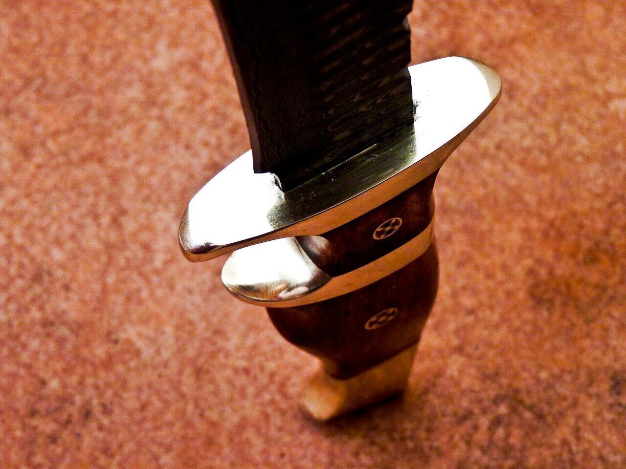 Heritage Forge 12 Inch Damascus Steel Bowie Knife with Natural Wood Handle for Hunting and Camping