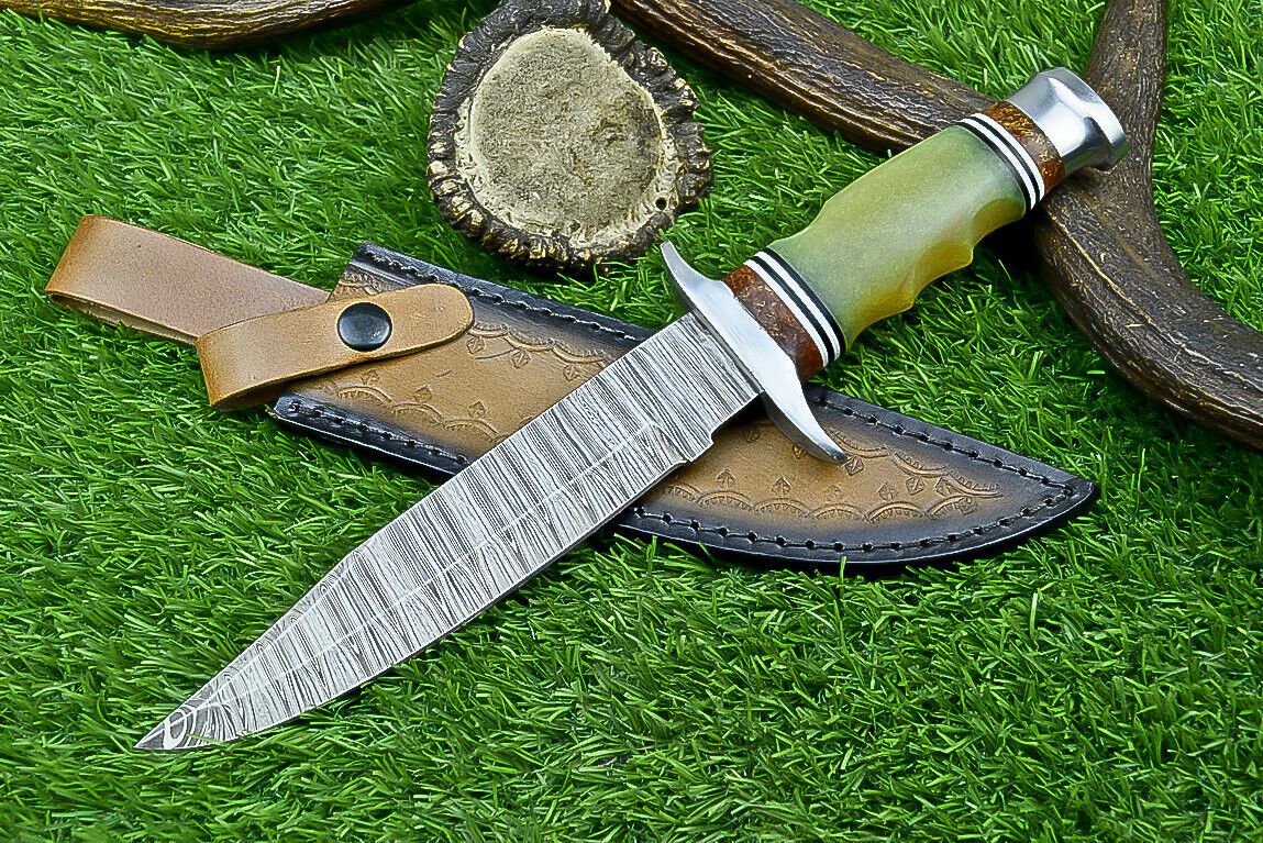 Heritage Forge 12 Inch Resin Handle Damascus Steel Bowie Knife for Hunting and Camping