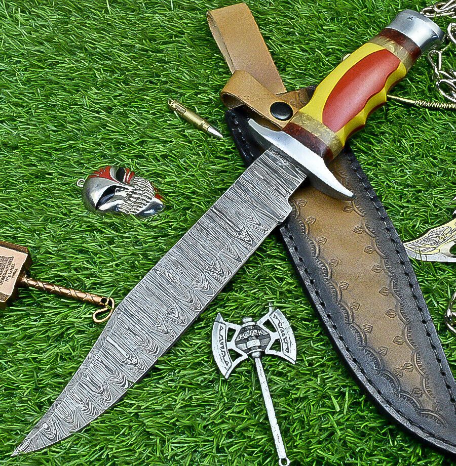 Heritage Forge 14 Inch Resin Handle Damascus Bowie Knife for Hunting and Wilderness Survival