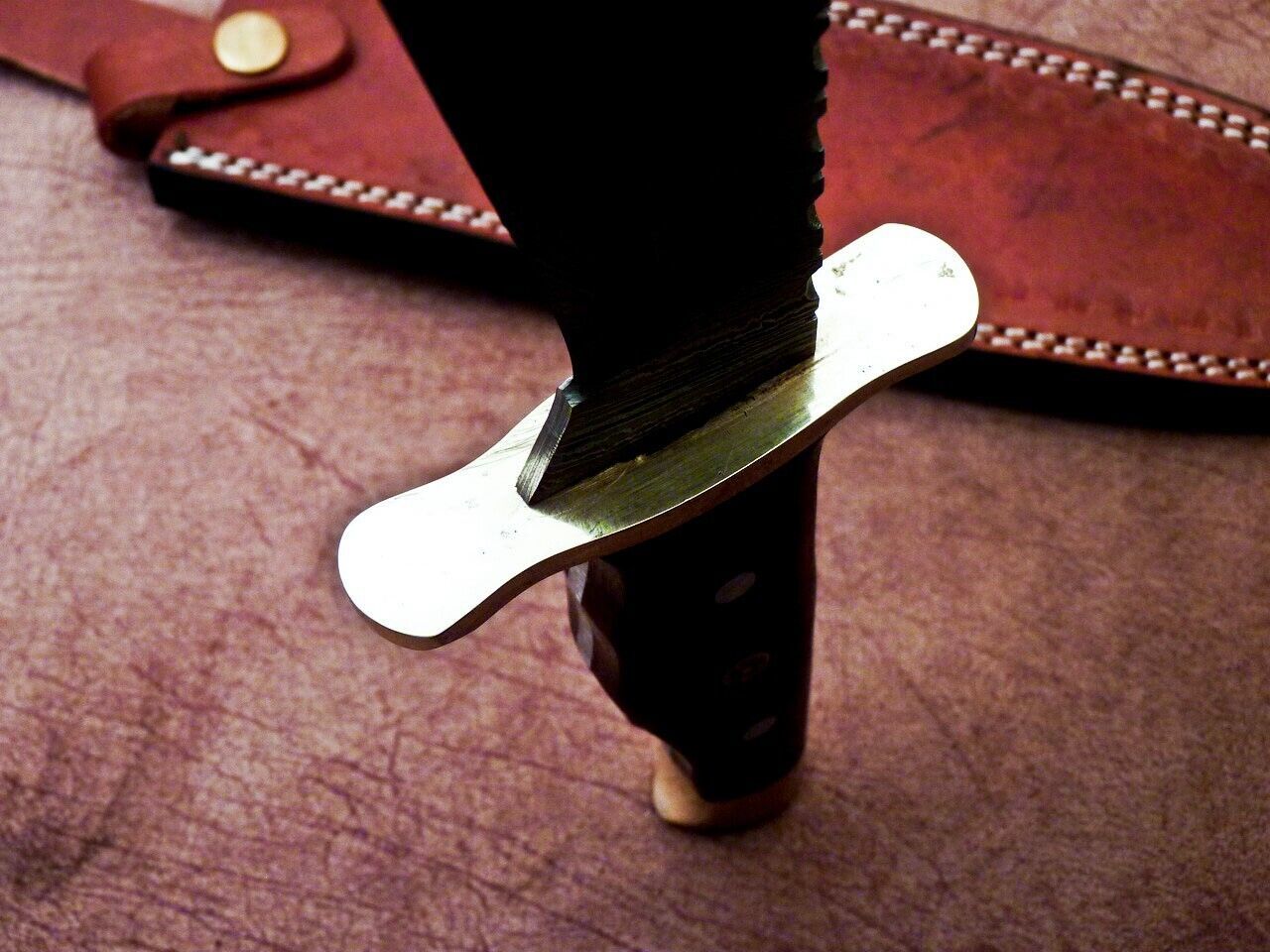 Each knife includes a custom leather sheath for secure storage and carrying. Handmade in Pakistan, this full tang Damascus bowie knife stands as a testament to skilled craftsmanship and rugged functionality.