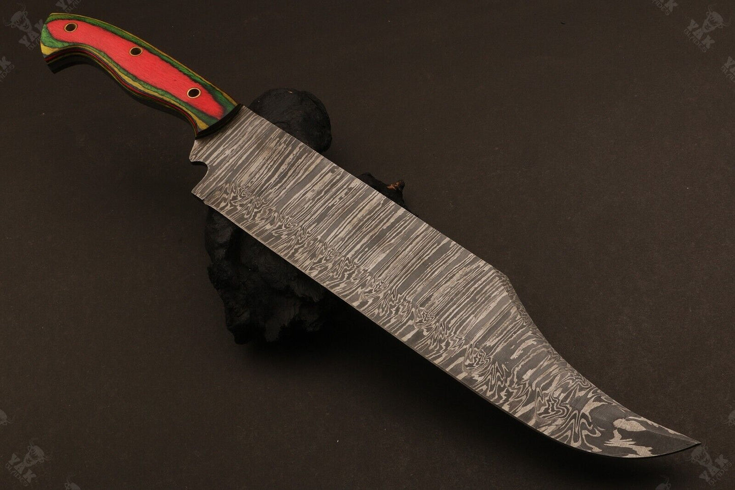 Heritage Forge 16 Inch Damascus Steel Bowie Knife with Wood Handle for Camping and Hunting