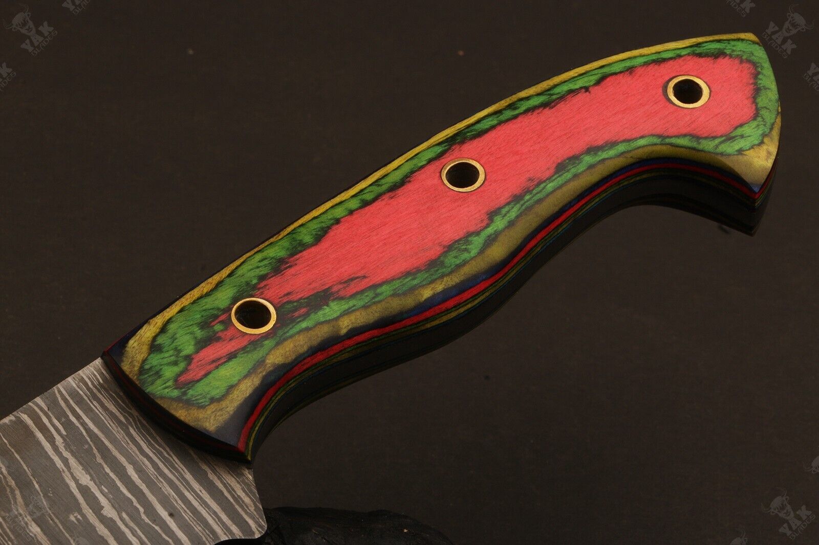 Its 11-inch blade is a true testament to craftsmanship—crafted from 512 layers of 1095 and 15N20 high carbon steels. This damascus blade knife is heat-treated to a Rockwell hardness of 54 HRC, offering incredible strength, edge retention, and a distinct patterned finish that enhances both performance and aesthetics.