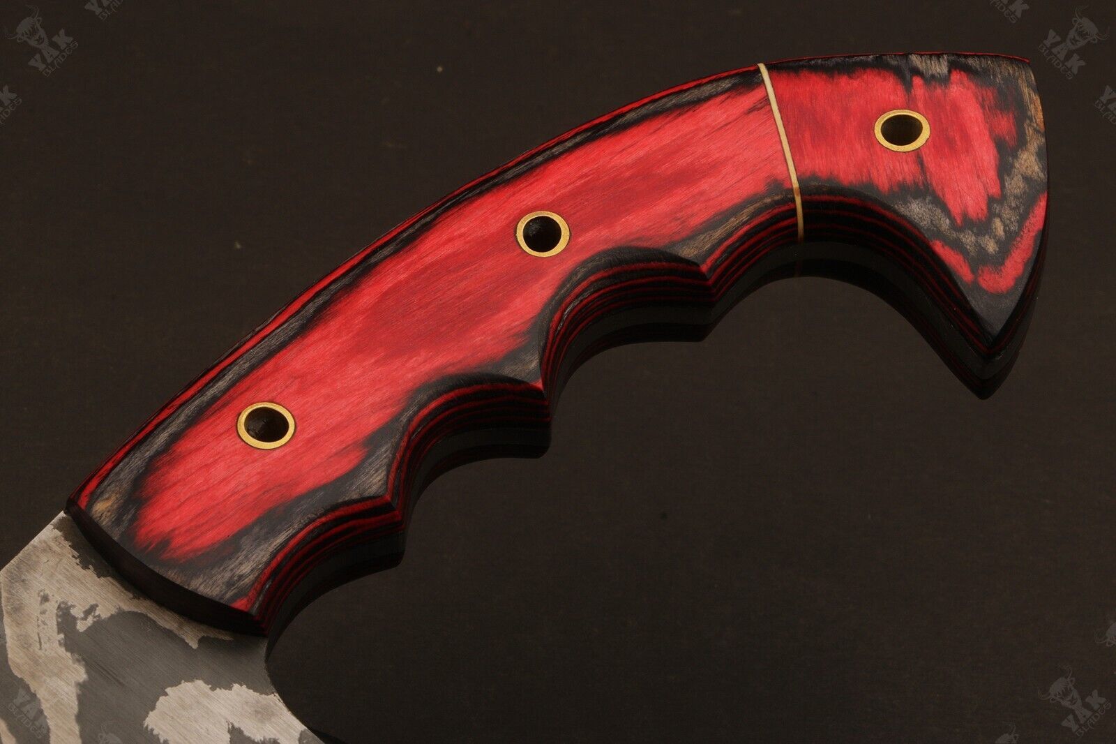 This full tang blade features a 4 mm thick, fire Damascus steel blade, hand-forged with 512 layers of 1095 and 15N20 high carbon steel. The striking layered pattern not only looks incredible but delivers a sharp, durable edge with a microscopic saw-tooth effect—ideal for extended hunting, camping, and survival tasks.