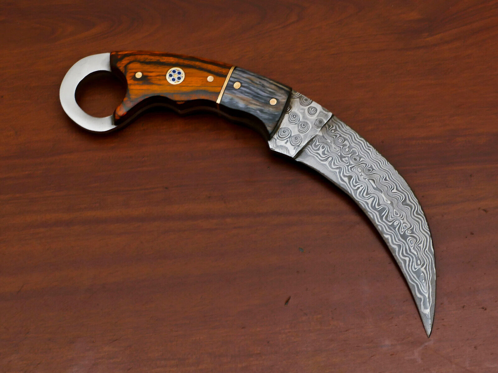 Introducing the Heritage Forge 8.5 Inch Damascus Karambit Dagger Knife, a masterfully handcrafted weapon designed for performance, style, and lasting durability. This striking fixed-blade knife features a 4.5-inch Damascus steel blade forged from layers of high carbon steel, delivering extraordinary sharpness and edge retention. Its karambit-style curved blade offers precision control and exceptional piercing ability, making it ideal for tactical, hunting, and survival use.