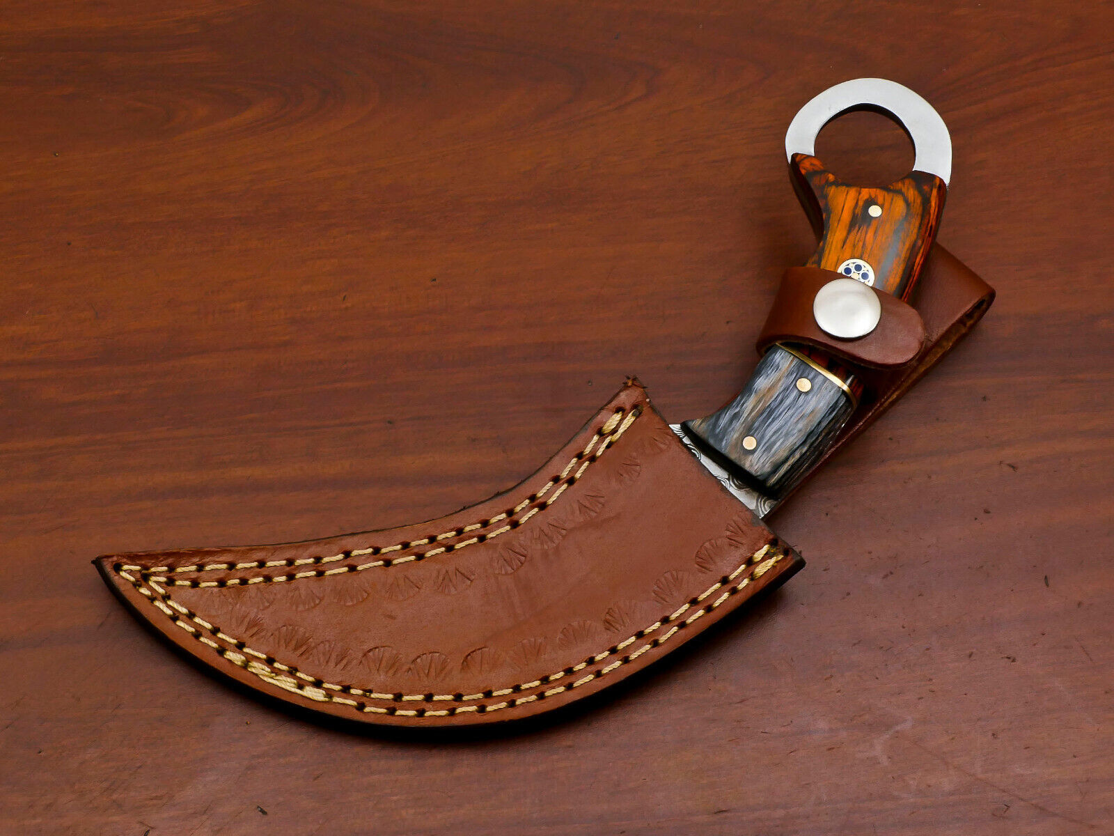 Housed in a custom-fit premium leather sheath, this handmade karambit knife is as functional as it is beautiful. Whether you’re a knife enthusiast, collector, or outdoor adventurer, this blade is a standout piece for your gear or display.