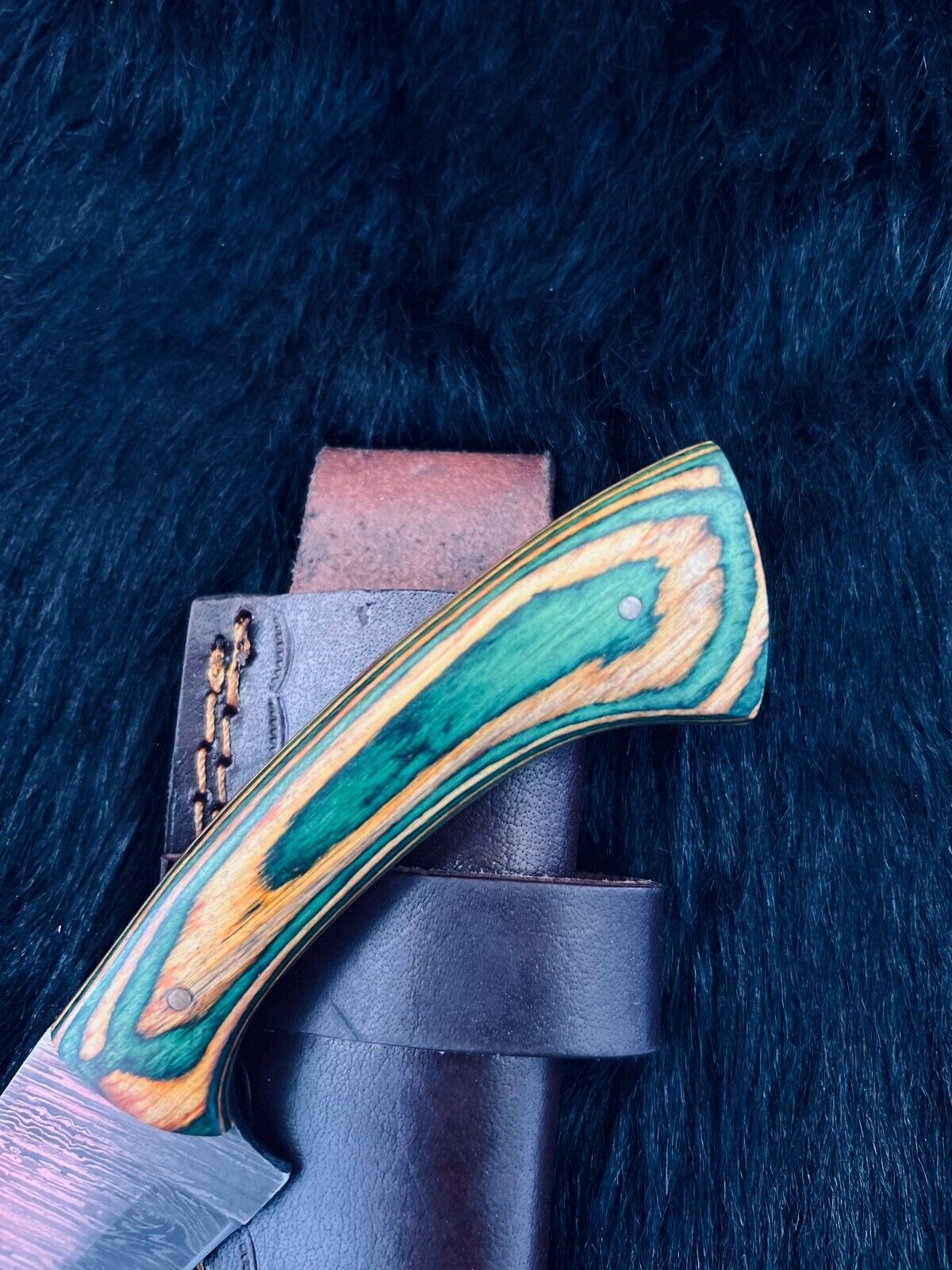 Elevate your outdoor gear with the Heritage Forge 8.5 Inch Twist Damascus Steel Skinner Knife, a beautifully hand-forged tool built for precision and power. Designed for skinning, camping, hunting, and bushcraft, this full tang fixed blade knife features a 4-inch razor-sharp blade crafted from high carbon 1095 and 15N20 Damascus steel, boasting an intricate 512-layer twist pattern. The blade is heat-treated to perfection, offering a Rockwell hardness of 54 HRC at the edge for superior cutting performance.