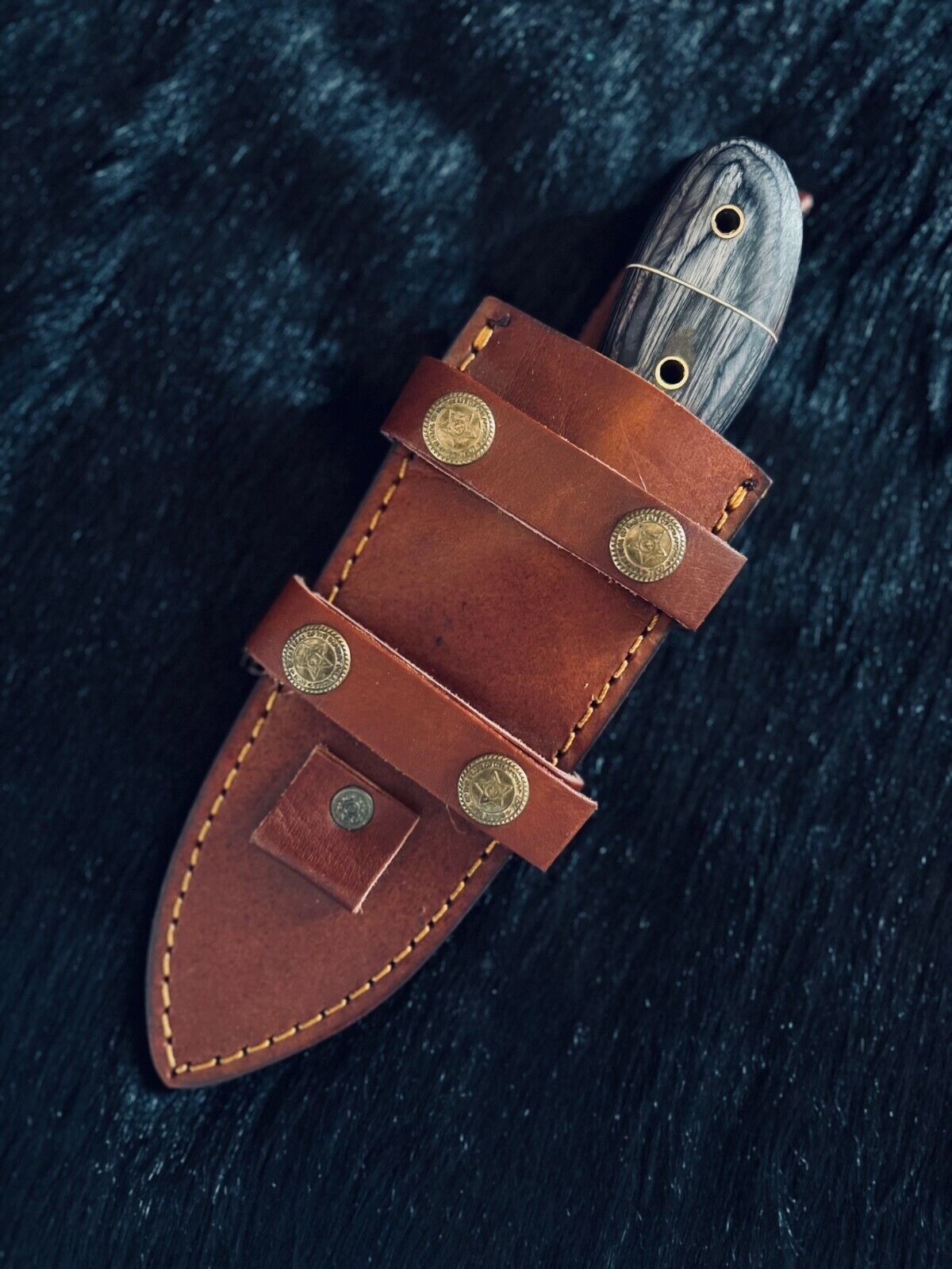 Handcrafted in Pakistan by skilled artisans, every detail in this knife—from its fire-forged pattern to the polished brass accents—reflects true Damascus craftsmanship. A genuine leather sheath is included, offering secure storage and protection for years of use.