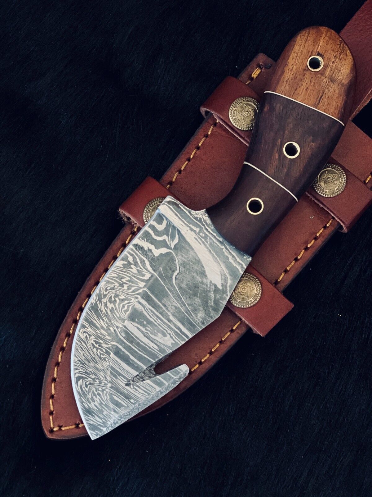 The Heritage Forge 8 Inch Custom Handmade Fire Damascus Steel Gutuk Bowie Knife is a compact, powerhouse blade crafted for camping, hunting, and everyday carry. Designed with a robust full tang structure and a unique Gutuk-style profile, this knife combines cutting precision with a rugged, handcrafted aesthetic.