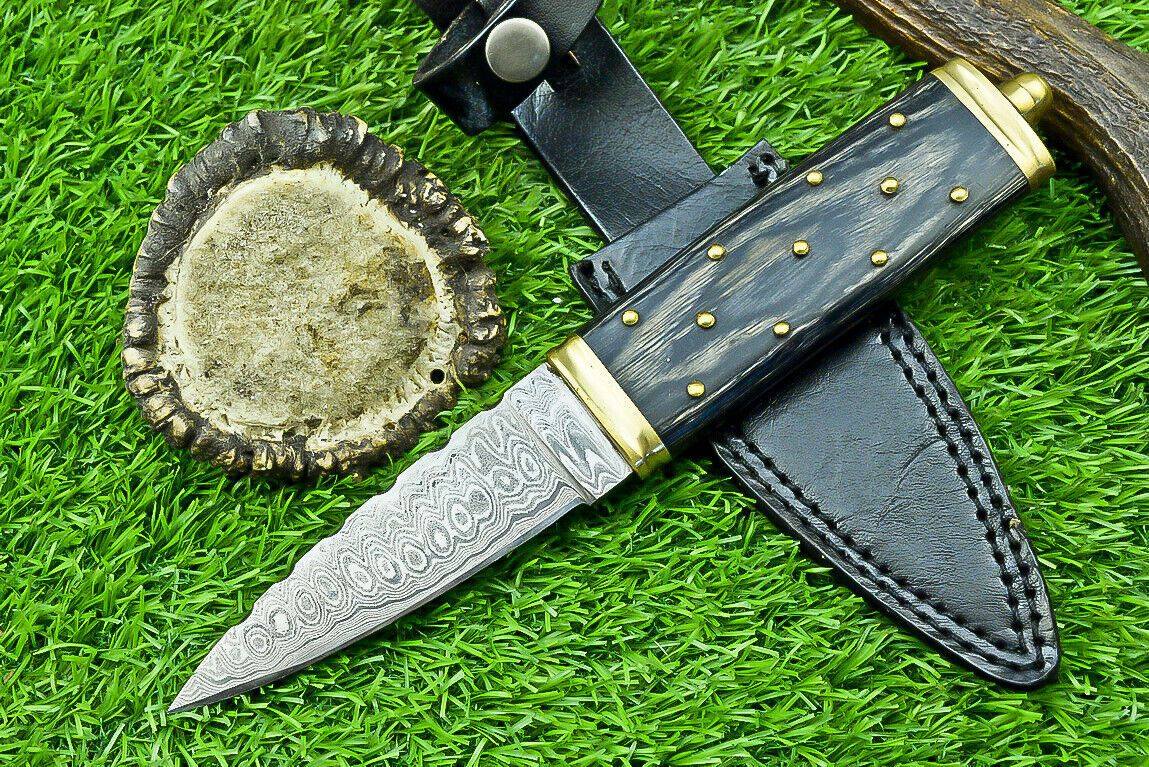 Elevate your outdoor adventures with the Heritage Forge 9 Inch Custom Handmade Damascus Steel Bowie Knife. This compact yet powerful blade is expertly hand forged using premium 1095HC and 15N20 nickel carbon steels, folded into 384 distinctive layers to form a stunning Damascus pattern. With its precision craftsmanship and elegant finish, this knife is perfect for hunting, camping, survival, or display.