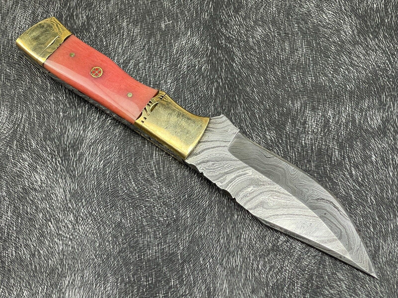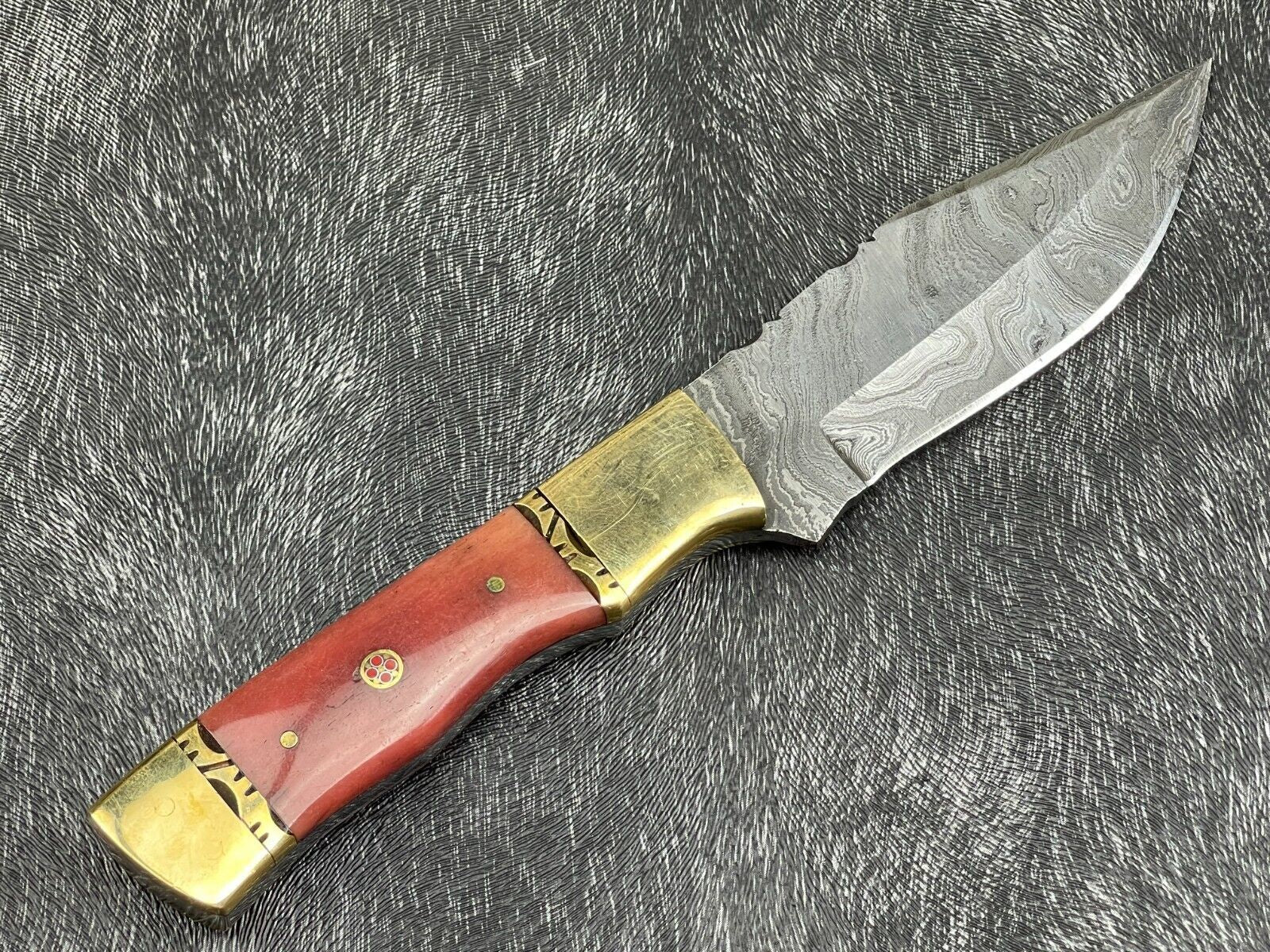 Heritage Forge 9 Inch Damascus Steel Hunting Skinning Knife with Resin Handle and brass including Leather Sheath