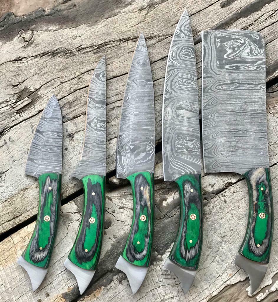 Heritage Forge Custom Handmade Twist Damascus Steel Chef Knife Set