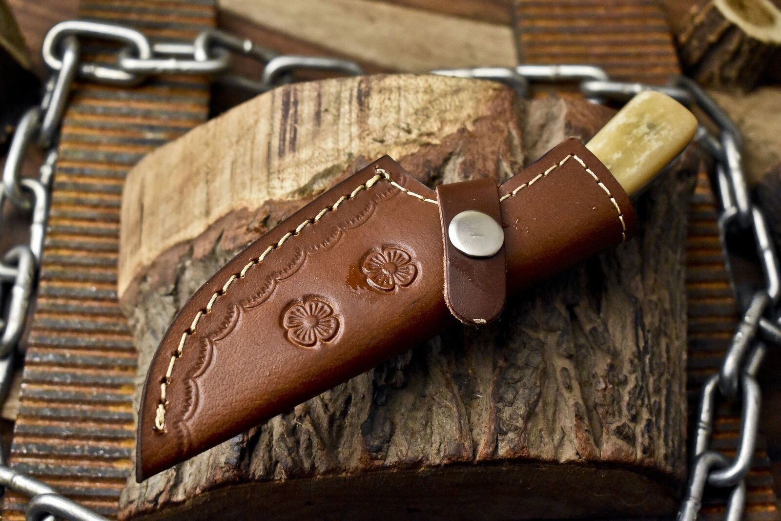 Measuring approximately 7 inches overall with a 4-inch handle, this knife is compact and perfectly balanced for detailed cutting tasks. It also includes a top-quality, thick, hand-tooled leather sheath, reinforced with extra stitching to withstand years of rugged use.