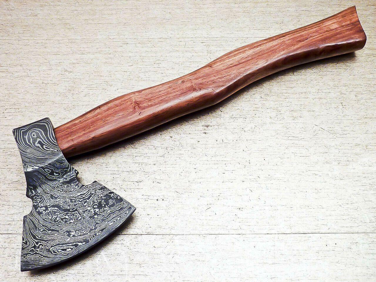 Limited Edition Handmade Damascus Steel Axe with Natural Wood Handle – Custom Forged Unique Damascus Axe with Leather Sheath