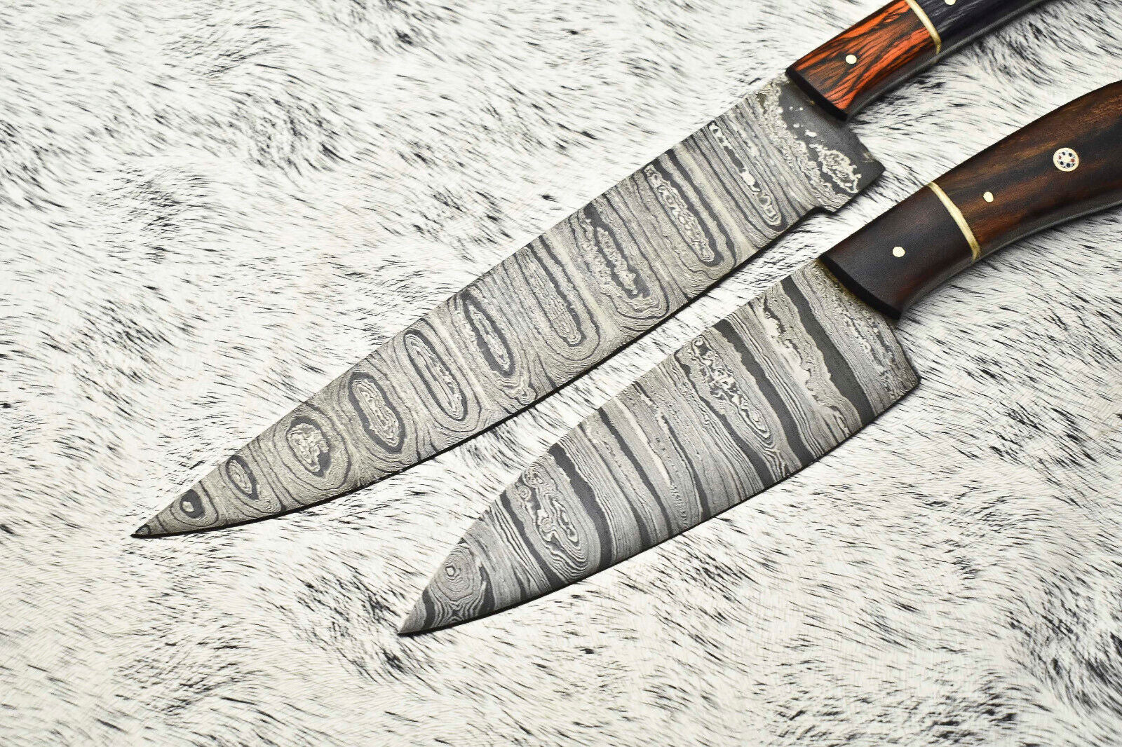 Lot of 2 Handmade Damascus Blade Full Tang Chef Set Knives – Unique Handmade Kitchen Knives