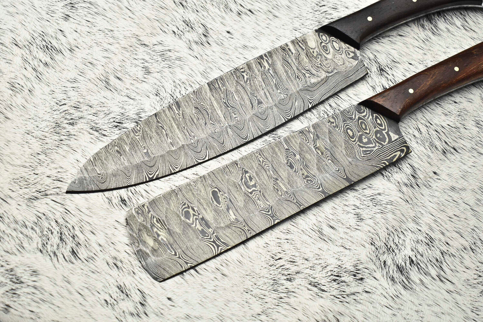 Lot of 2 Handmade Damascus Steel Blade Chef Set Knife, Full Tang, 100% Handmade