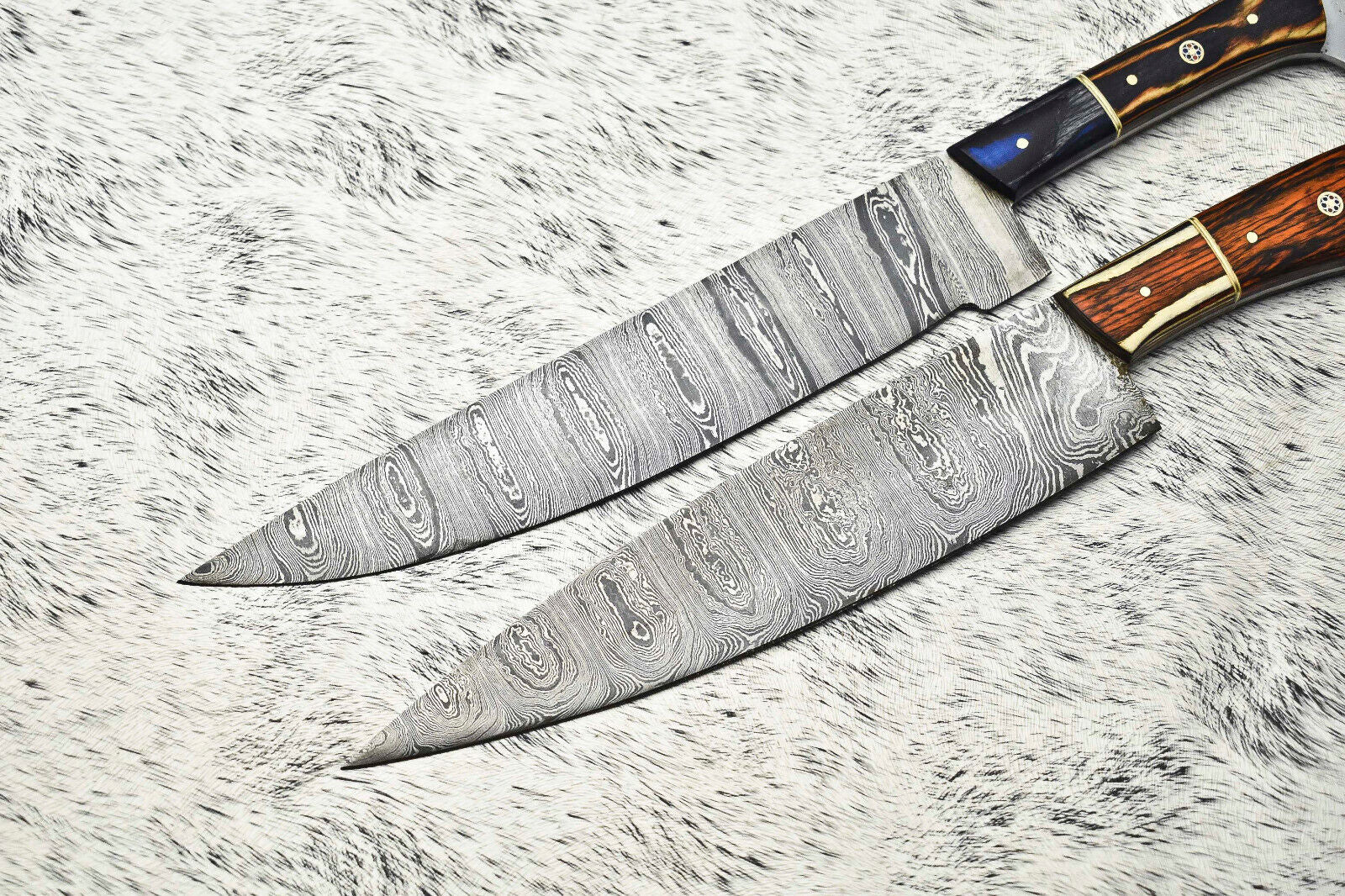 Lot of 2 Handmade Damascus Steel Chef Knives | Custom Forged Blade Kitchen Knife Set
