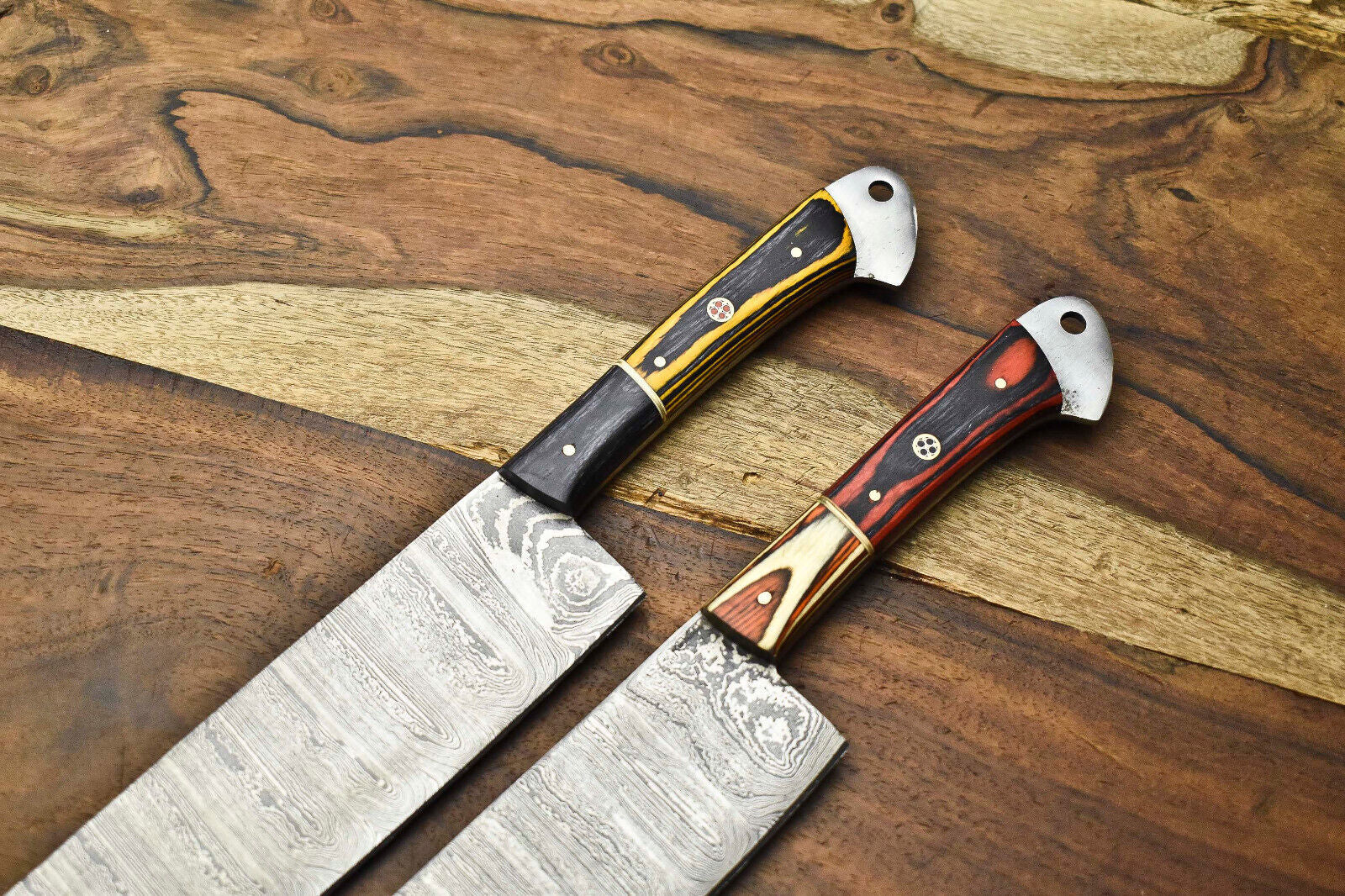 Lot of 2 Handmade Damascus Steel Chef Knives – Full Tang Kitchen Cutlery