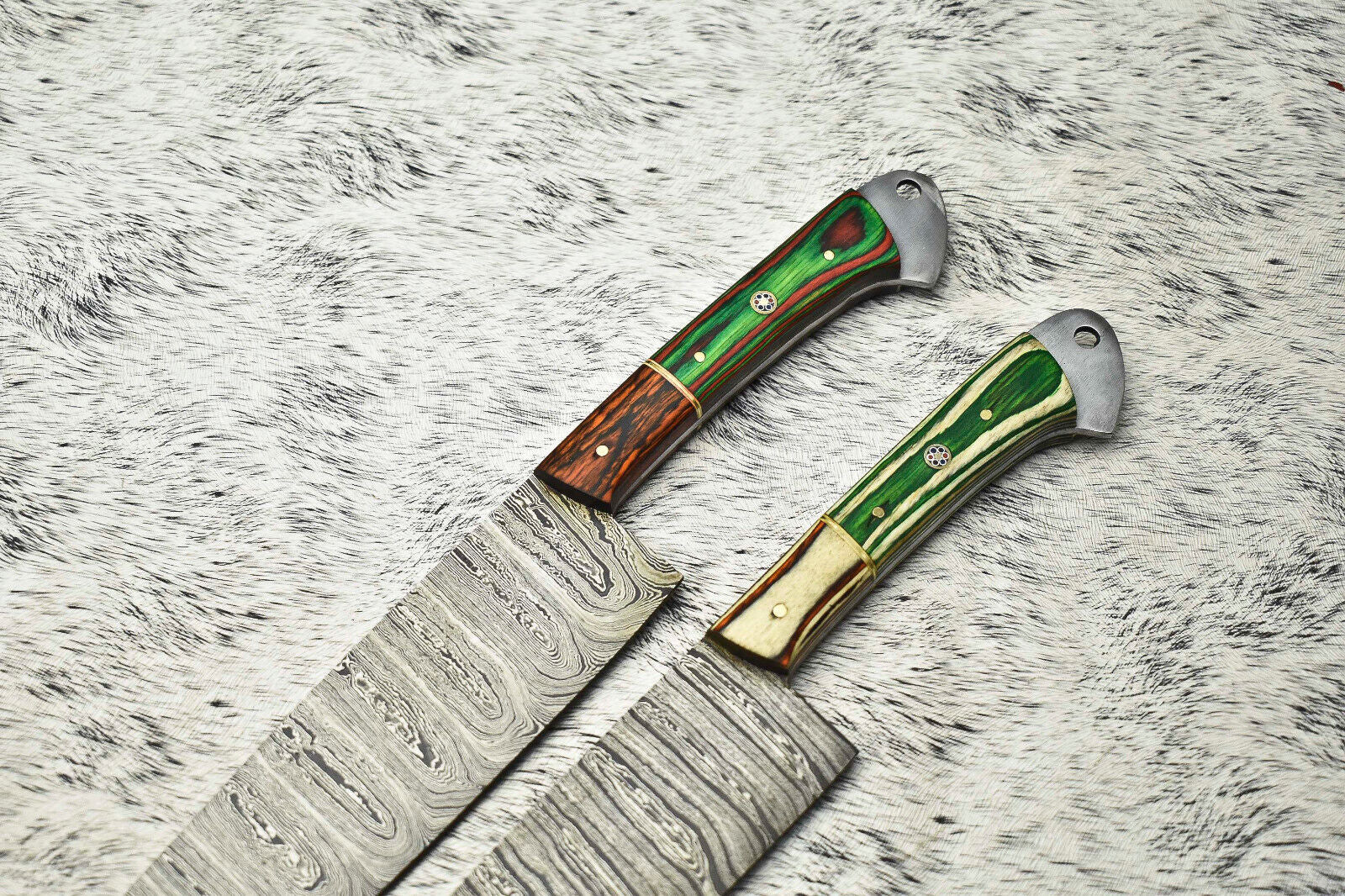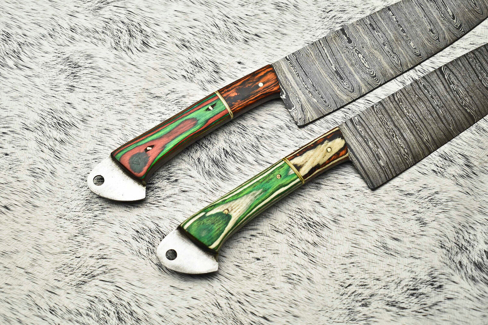 Lot of 2 Handmade Damascus Steel Full Tang Chef Knives Set