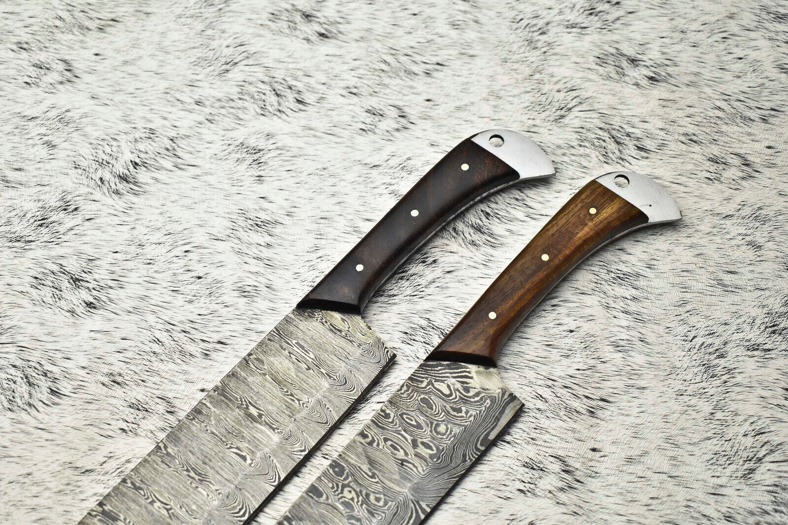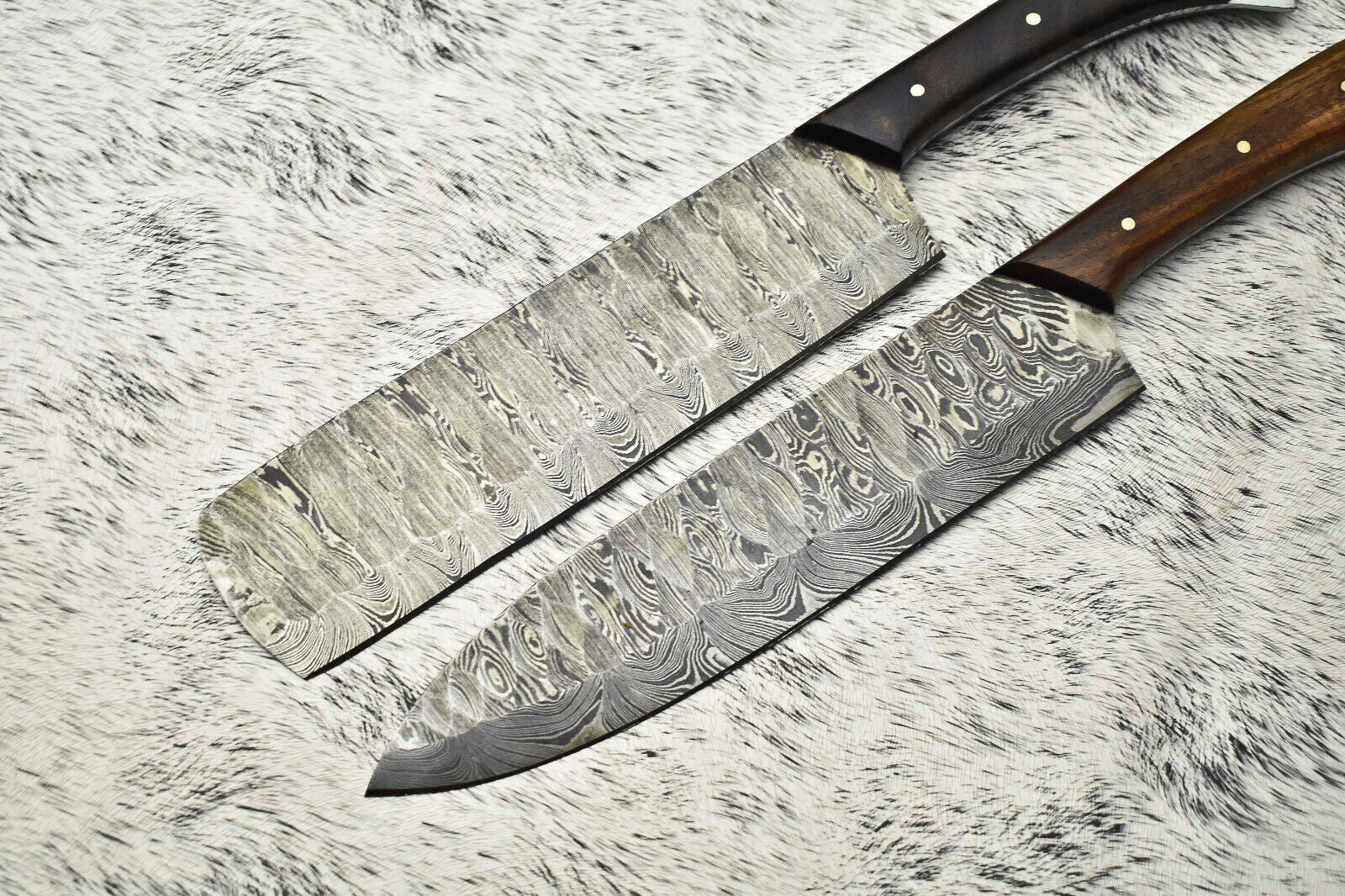 Lot of 2 Handmade Damascus Steel Full Tang Chef Knives Set – Premium Kitchen Knives