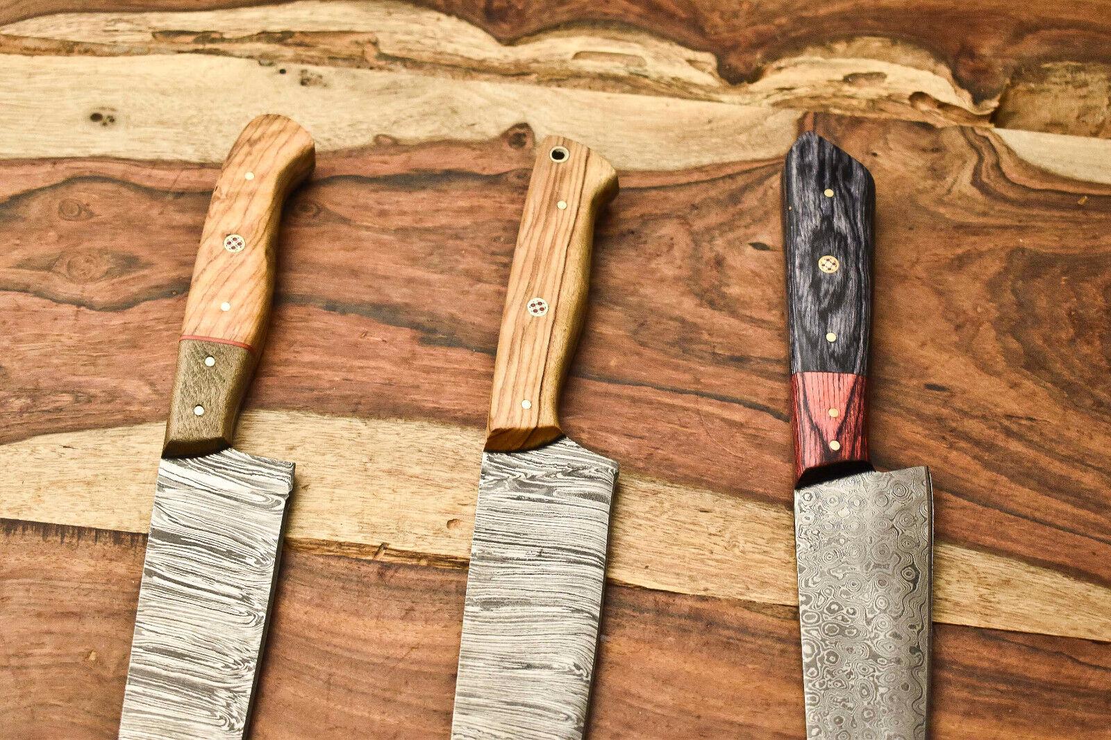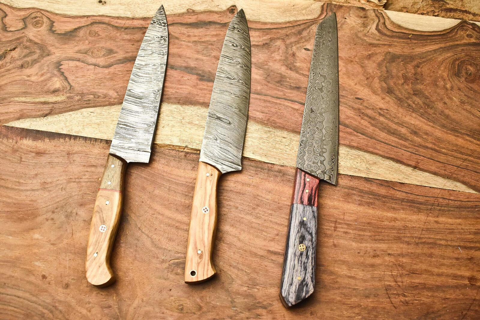 Lot of 3 Handmade Damascus Blade Full Tang Chef Set Knife