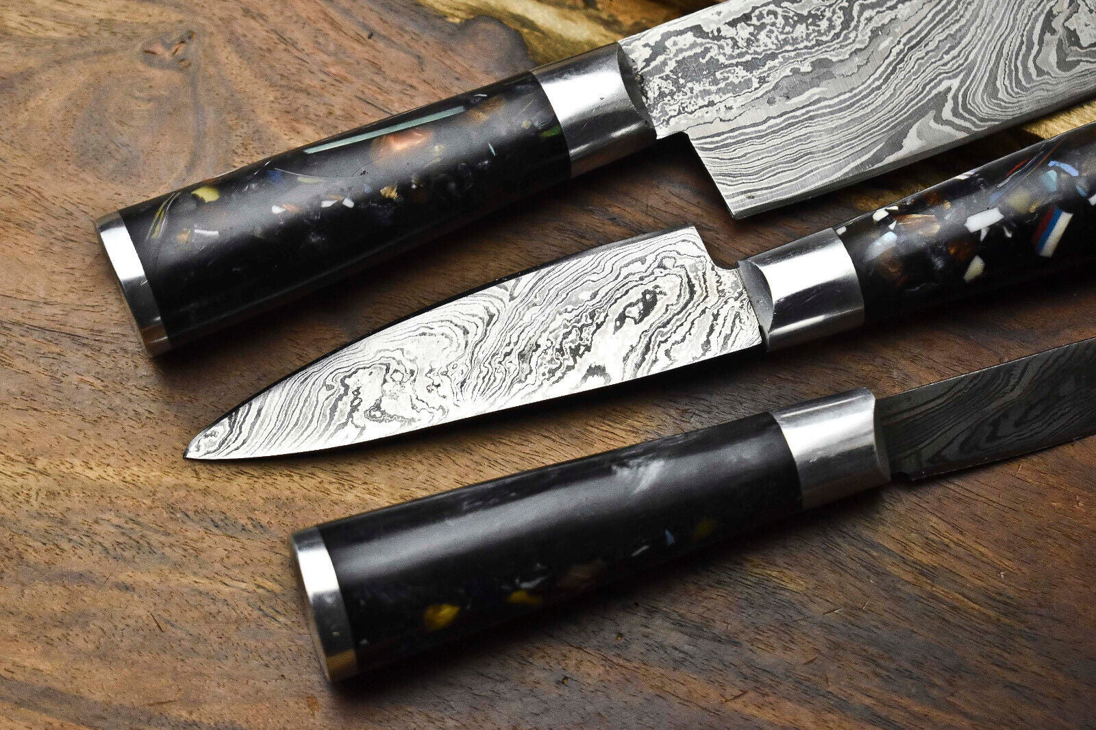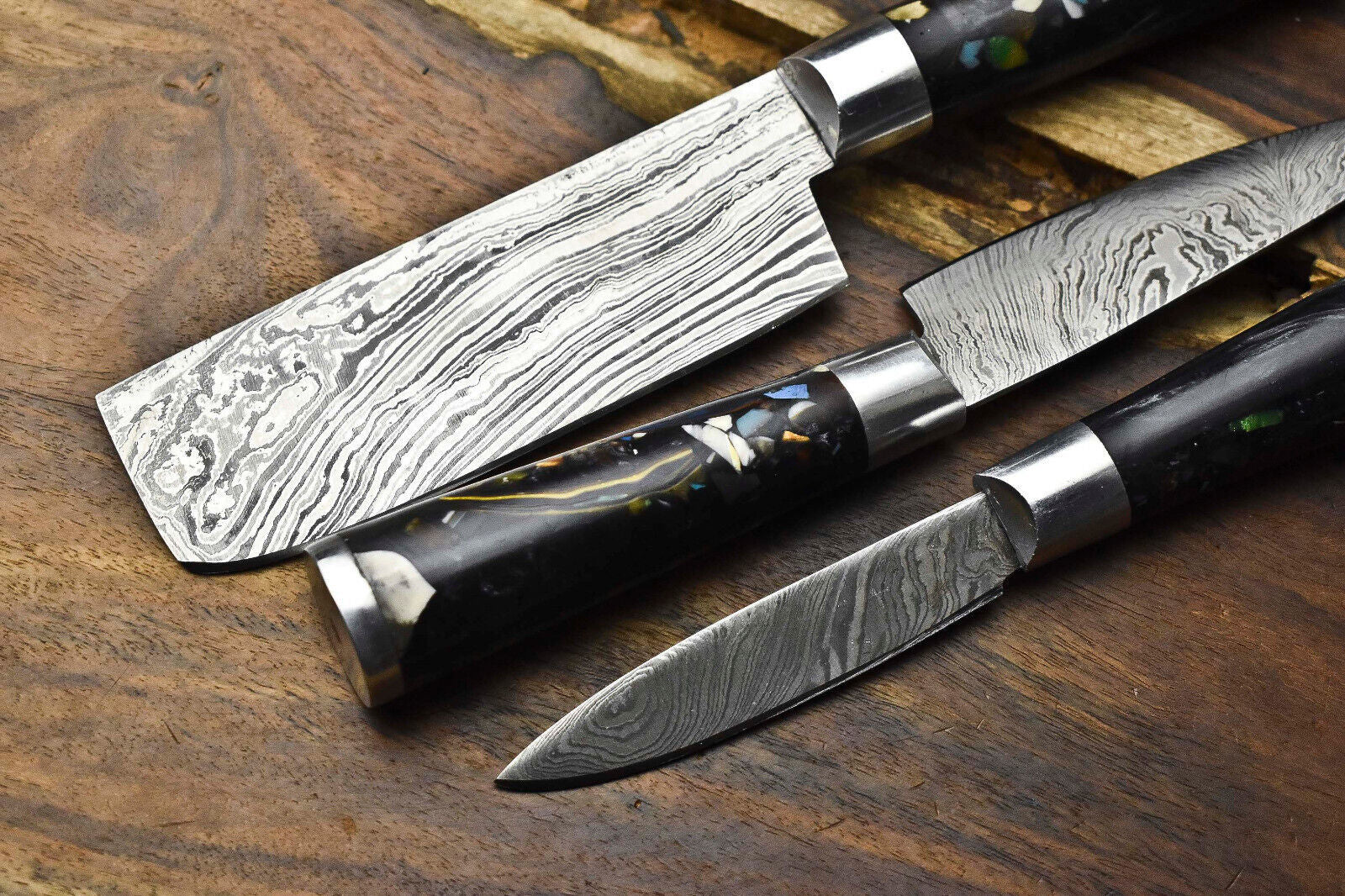 Lot of 3 Handmade Damascus Steel Blade Chef Knife Set – 100% Handmade
