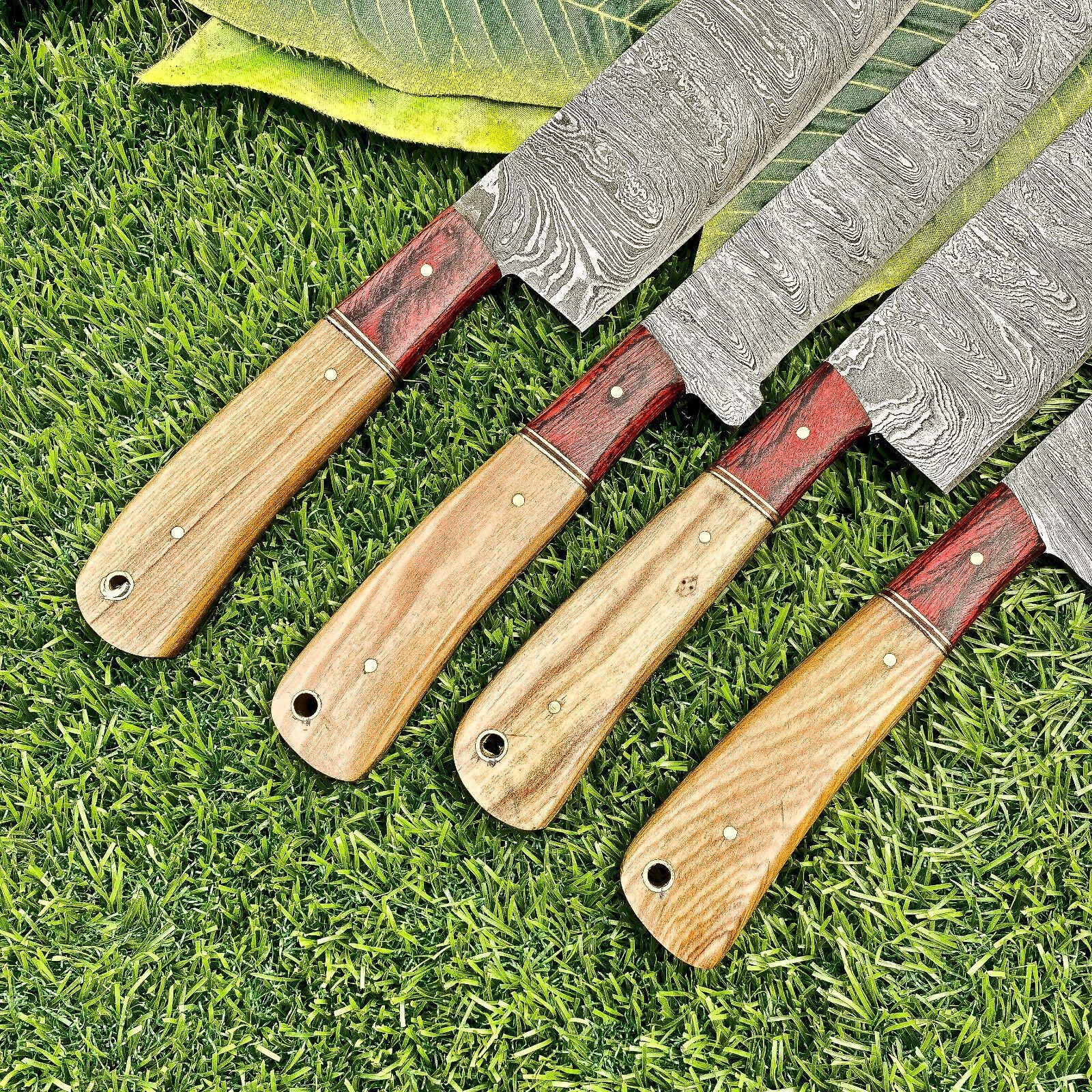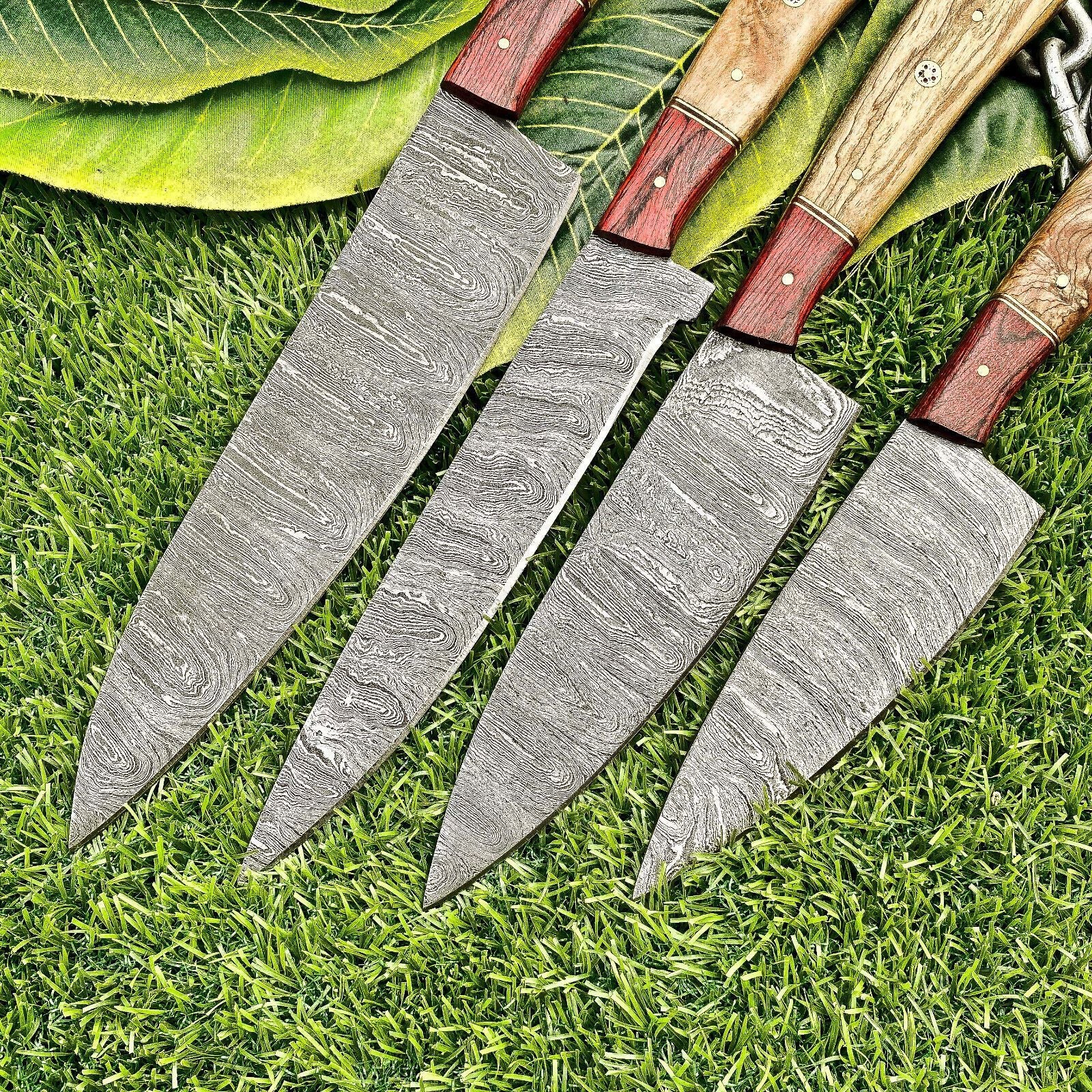 Lot of 4 Damascus Steel Chef Knives Set – Full Tang Kitchen Knife Collection