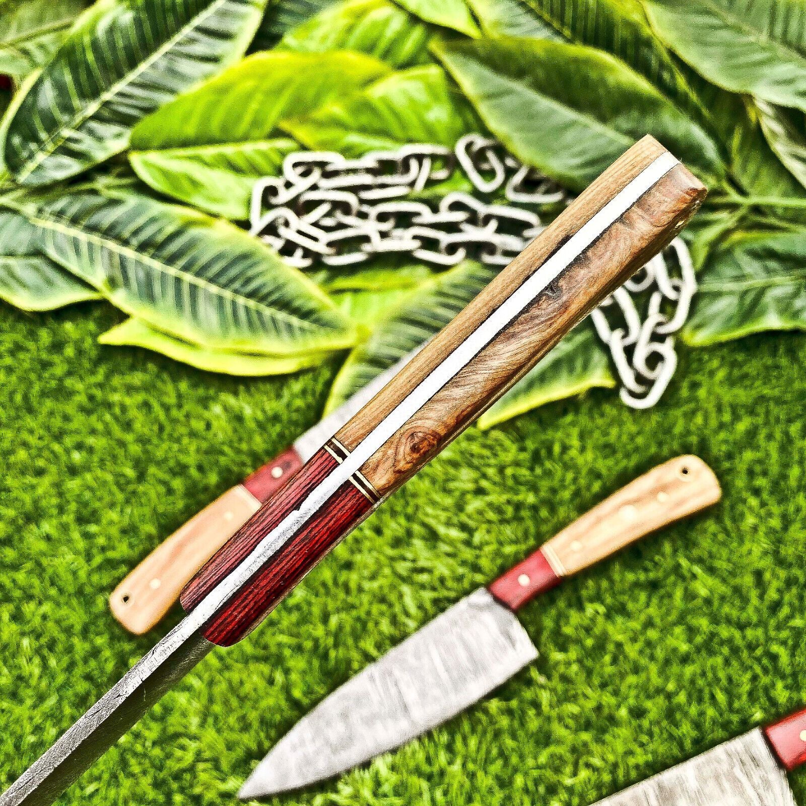 Upgrade your kitchen arsenal with this Lot of 4 Custom Handmade Damascus Steel Chef Knives Set, designed for professional chefs and home cooks who demand precision, durability, and style. Each knife in this exclusive set features a hand-forged Damascus steel blade with a striking pattern, renowned for its razor-sharp edge, long-lasting durability, and excellent edge retention.