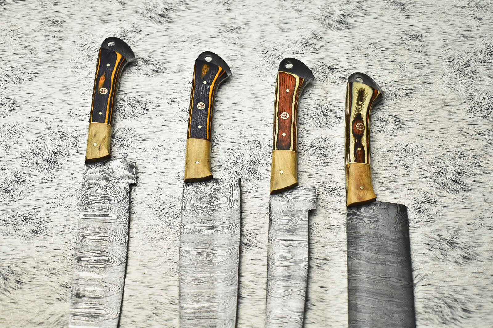 Lot Of 4 Handmade Damascus Hammered Full Tang Chef Set Knife | Hard Wood