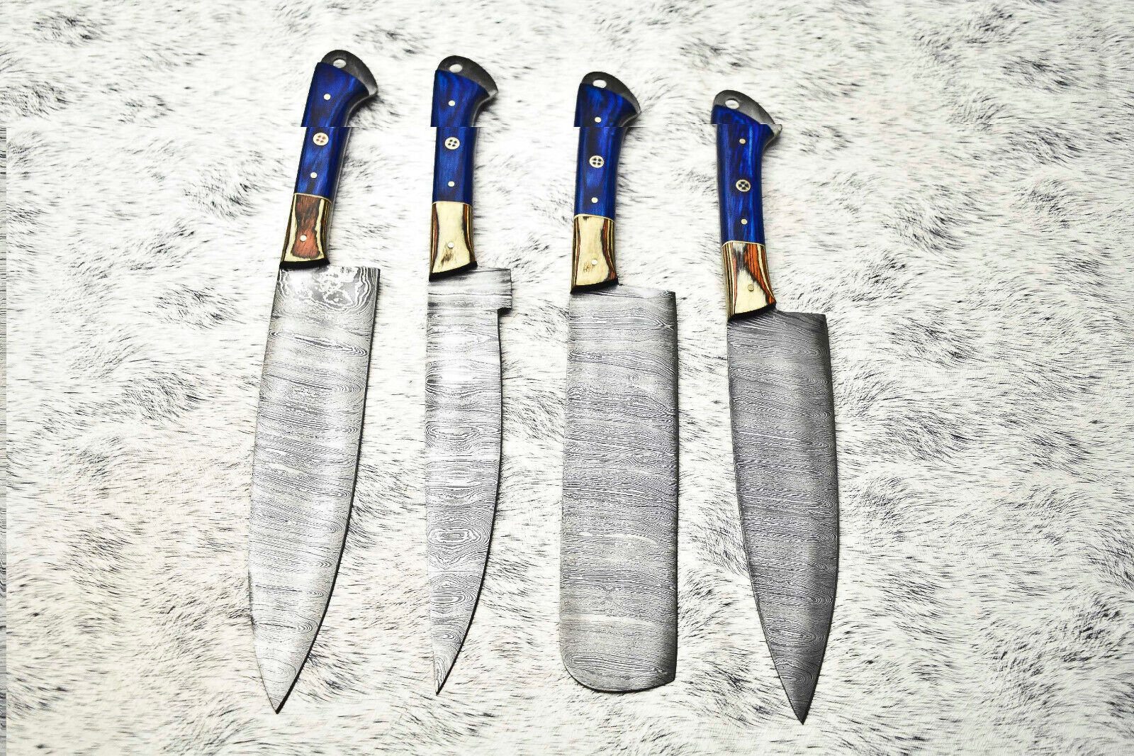 Lot Of 4 Handmade Damascus Hammered Full Tang Chef Set Knife | Hard Wood
