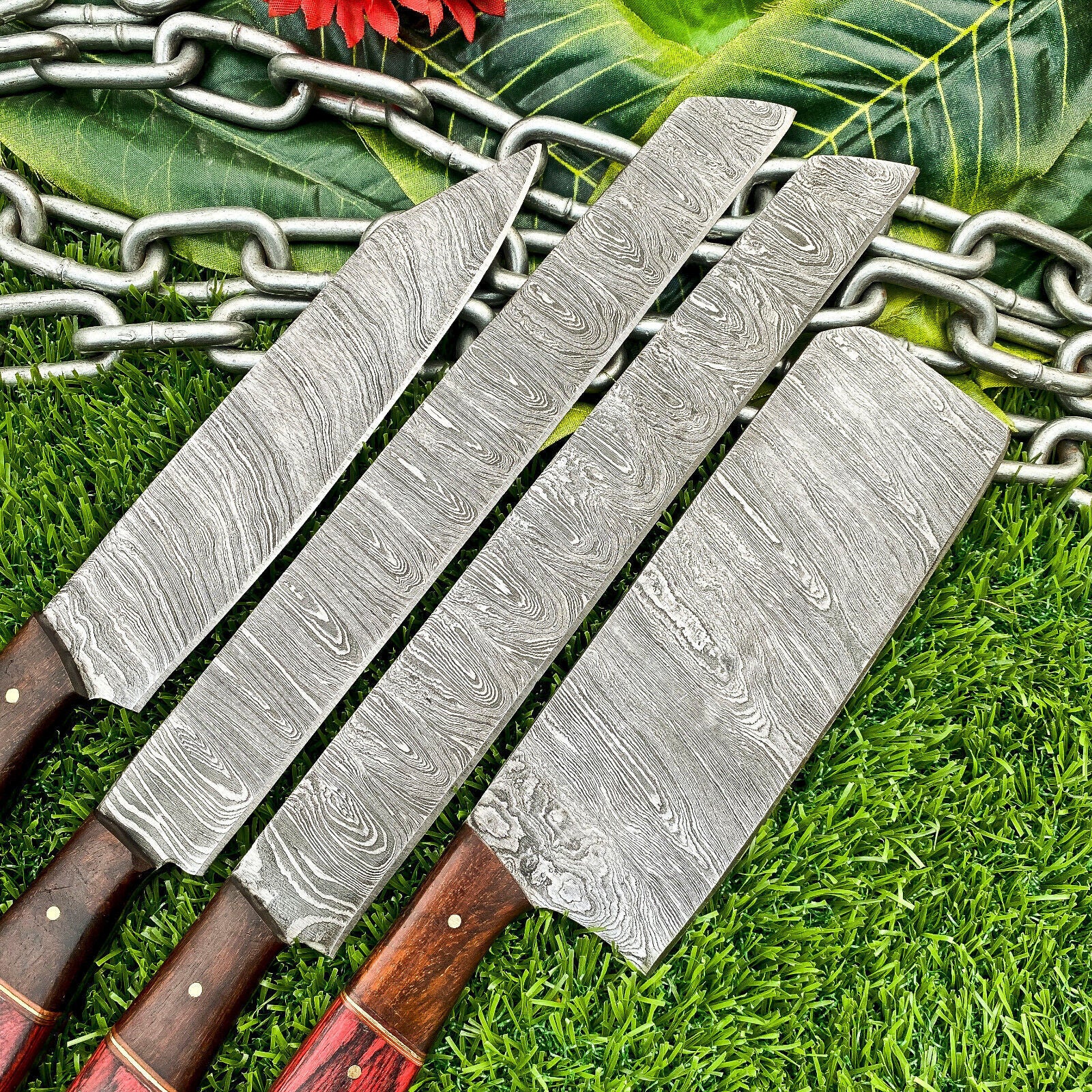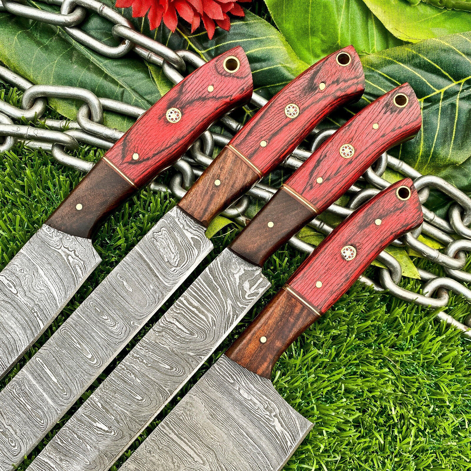 Lot of 4 Handmade Damascus Steel Chef Knives Set – Full Tang Kitchen Knife Collection