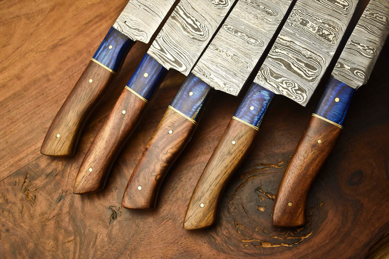 Lot of 5 Handmade Damascus Steel Blade Chef Knife Set – 384 Layer Forged, Full Tang