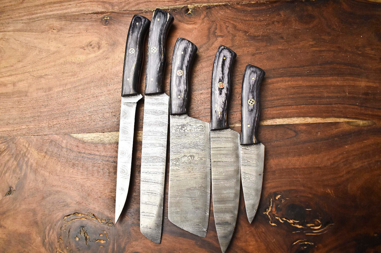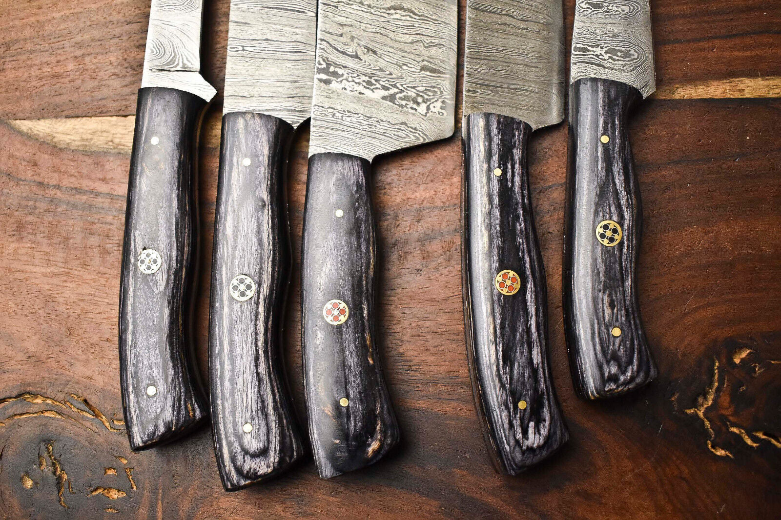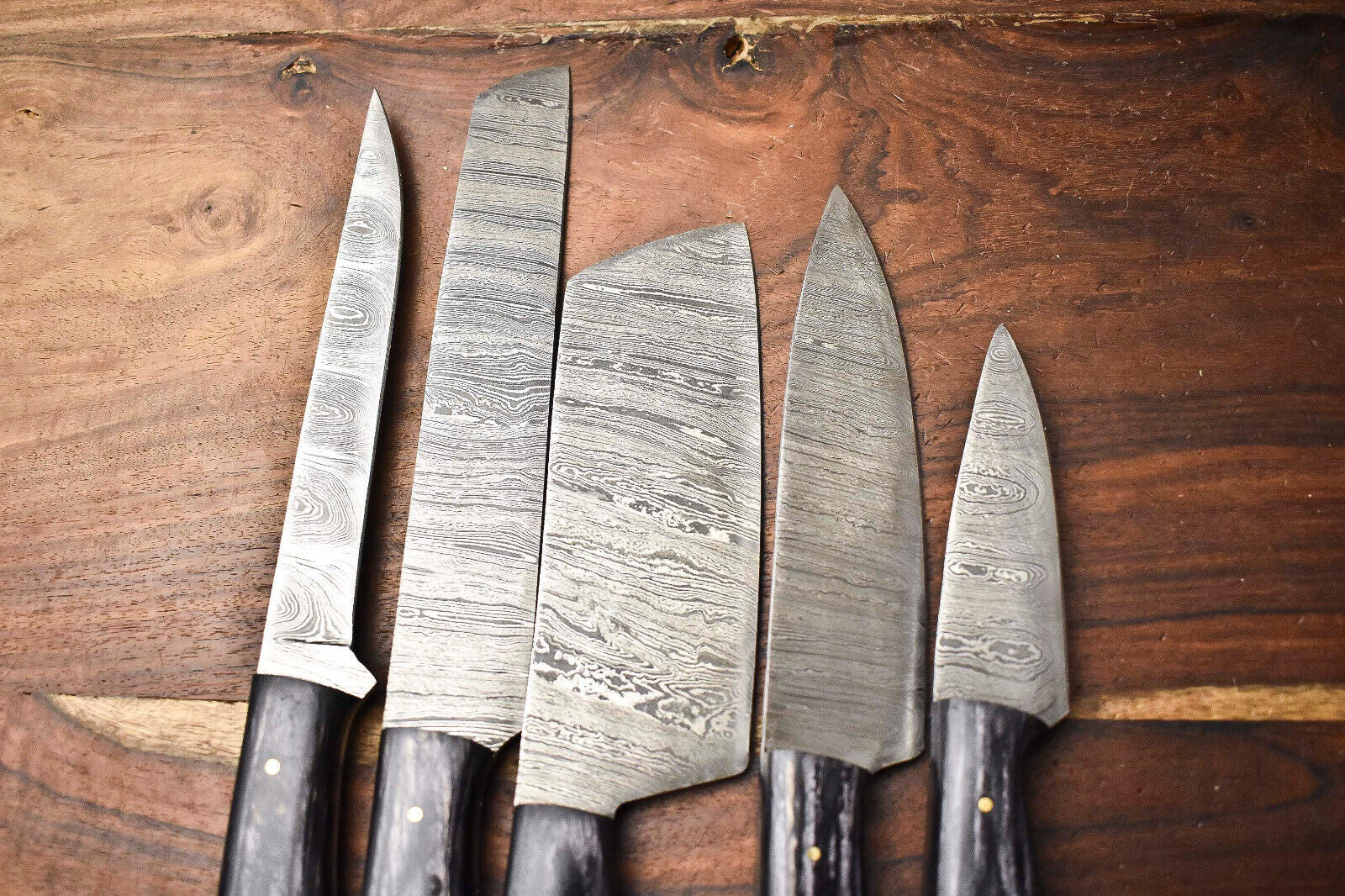 Lot of 5 Handmade Damascus Steel Blade Chef Knife Set – 384 Layer Forged Full Tang Blades