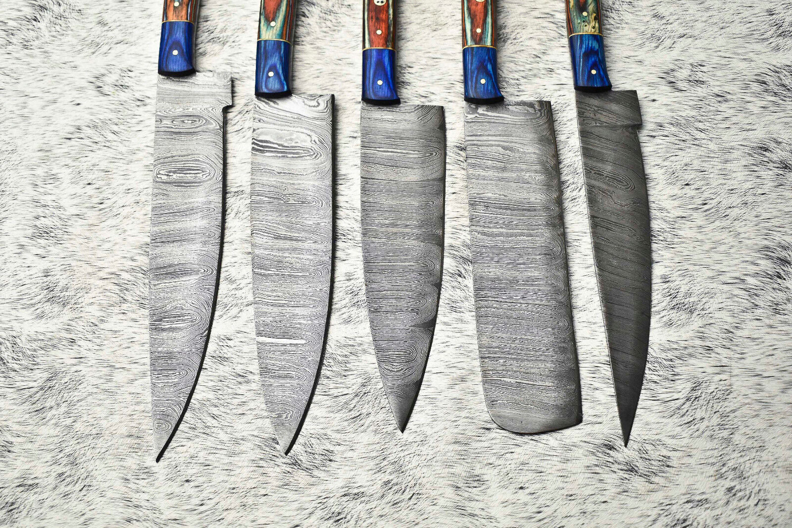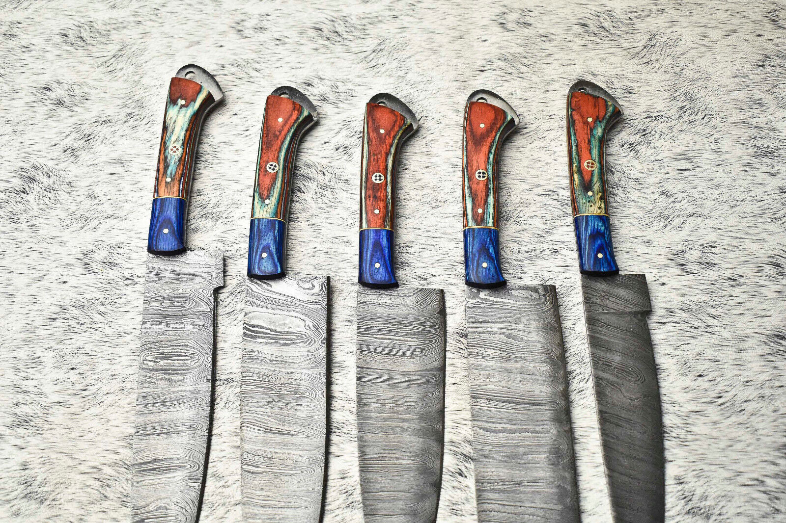 Lot of 5 Handmade Damascus Steel Chef Knives – Full Tang Kitchen Knife Set