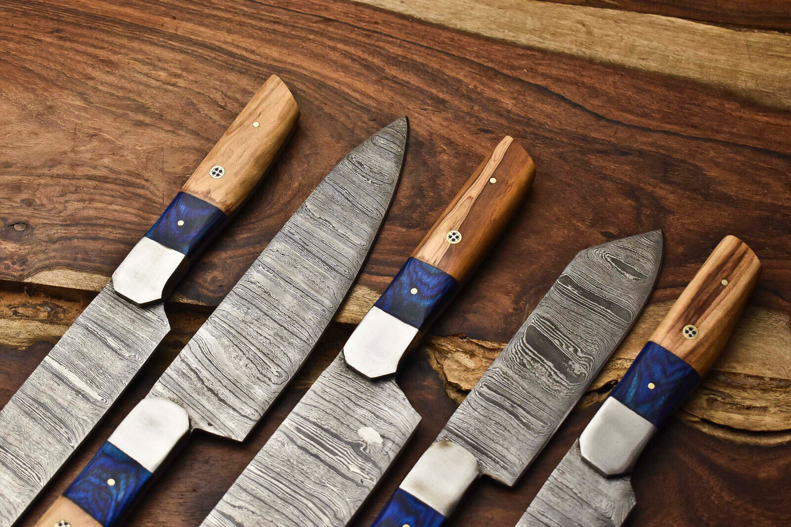 Lot of 5 Handmade Damascus Steel Chef Knives – Professional Kitchen Knife Set