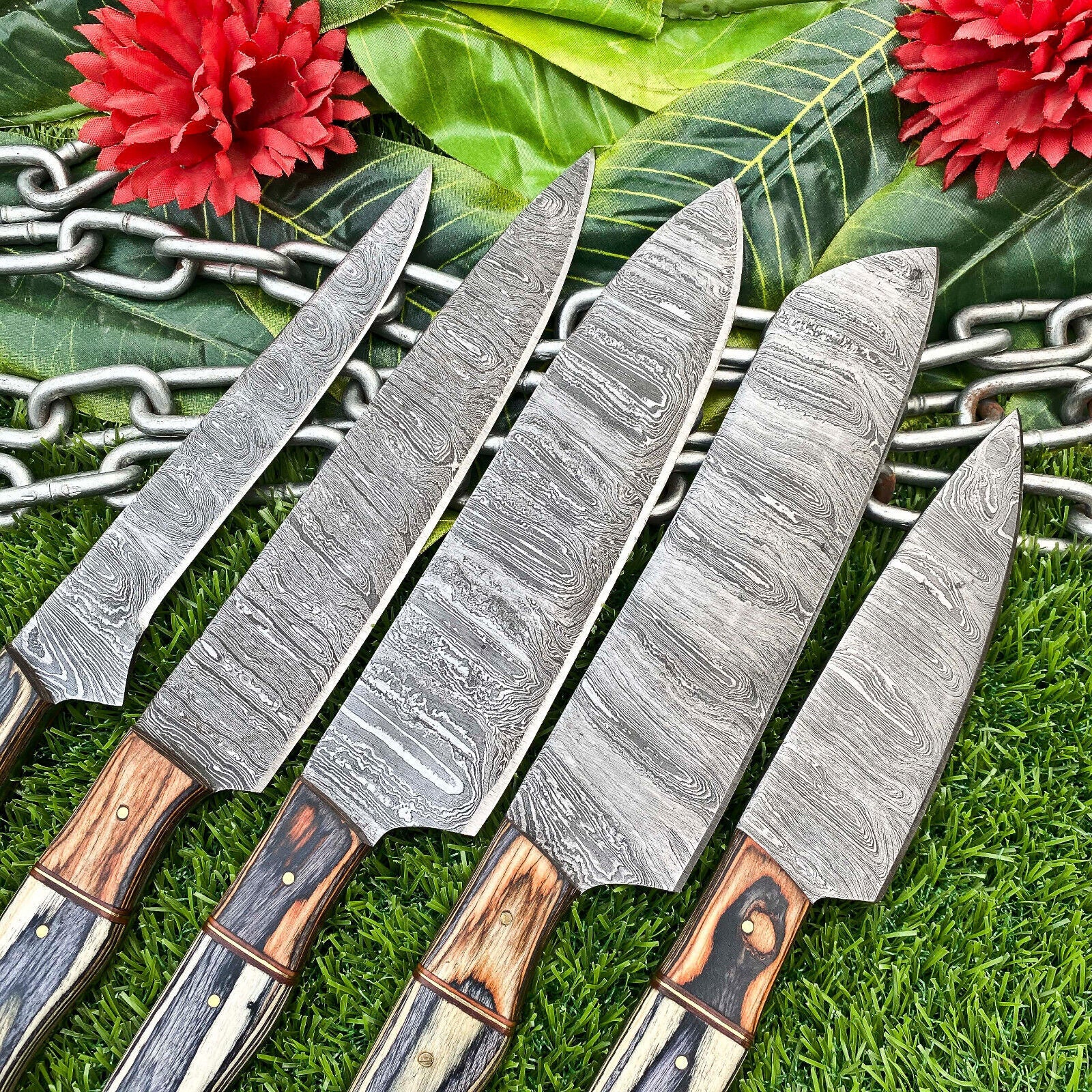 Lot of 5 Handmade Damascus Steel Full Tang Kitchen Chef Knife Set – Premium EDC Knives