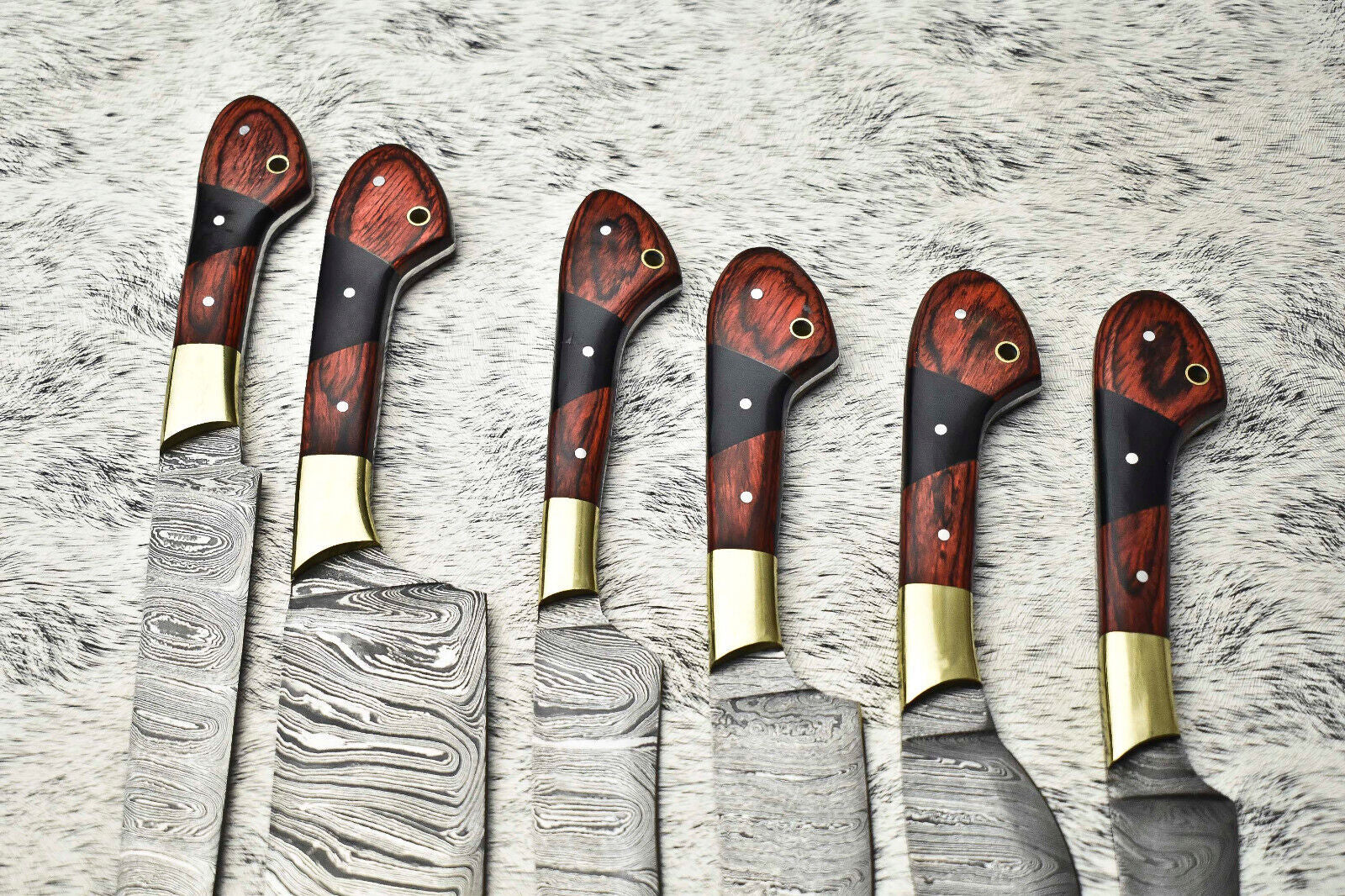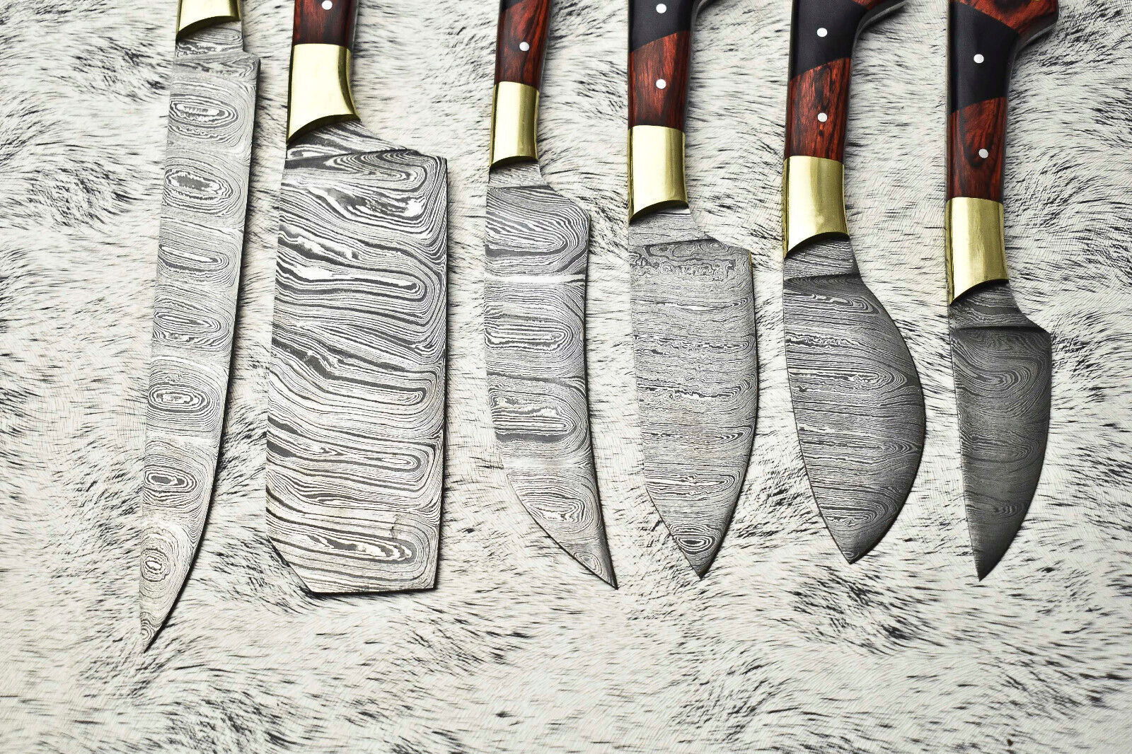 Lot of 6 Handmade Damascus Steel Chef Knife Set – Full Tang Kitchen Cutlery