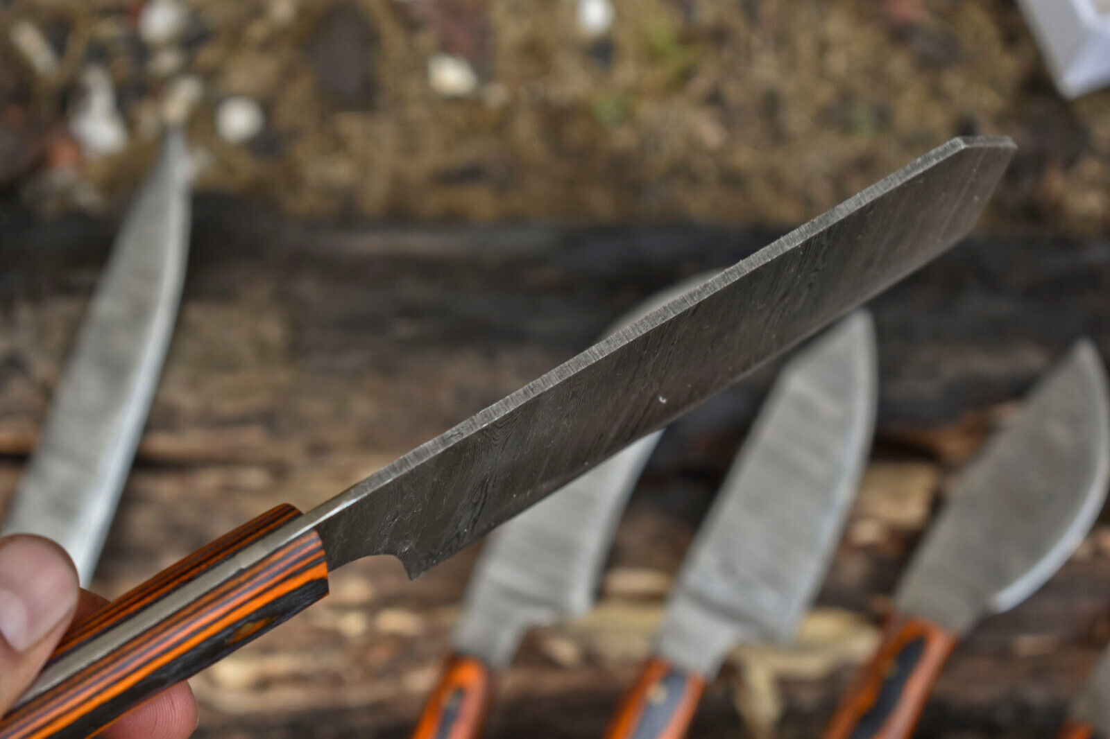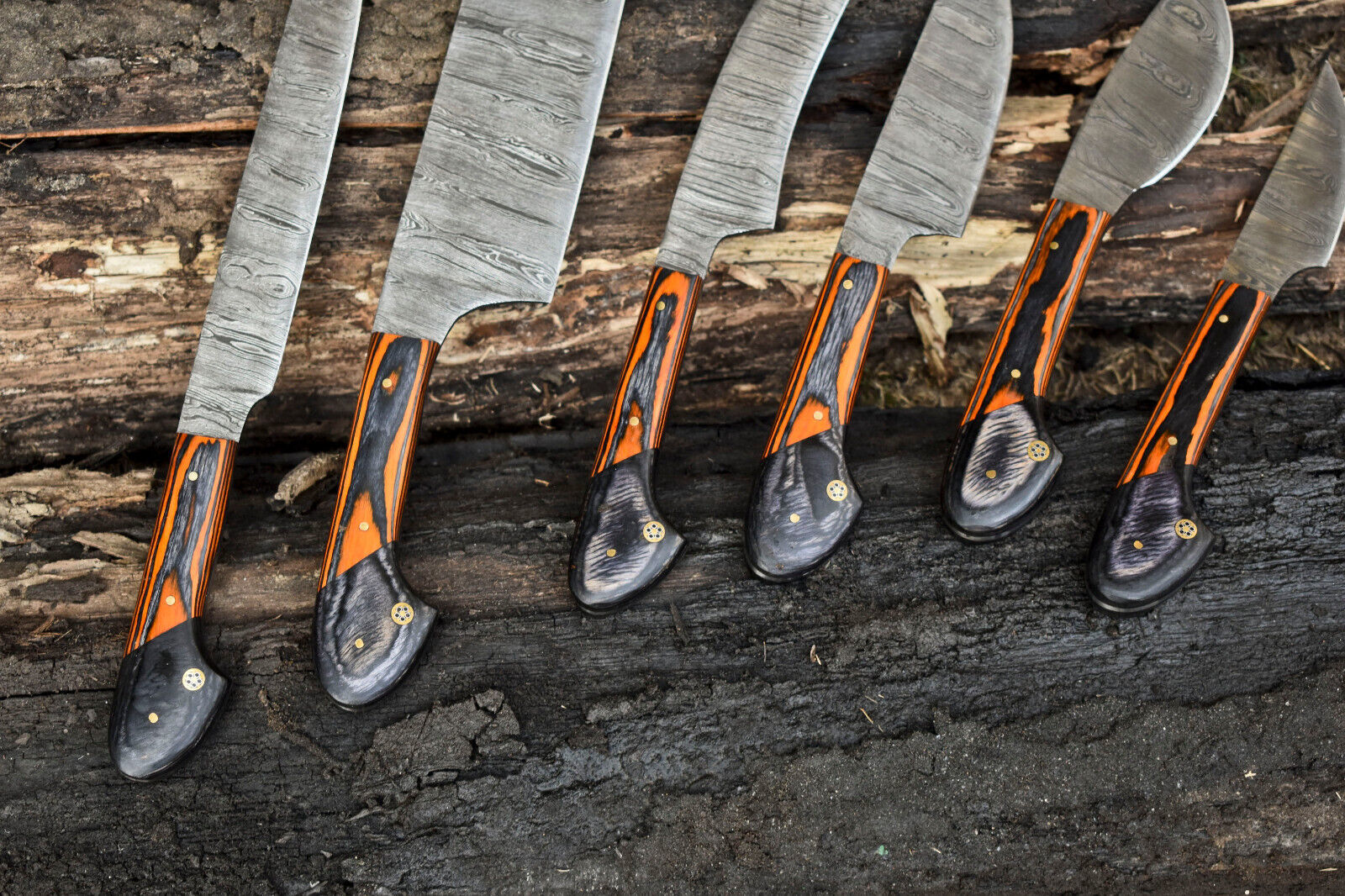 Lot of 6 Handmade Damascus Steel Chef Knives Set – Full Tang, Forged Kitchen Blades