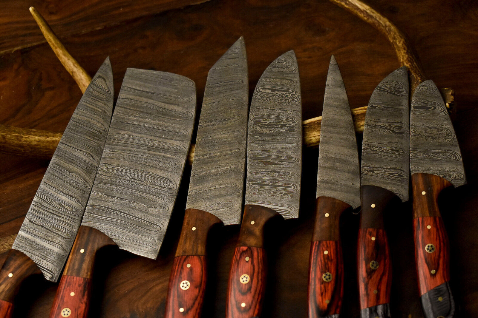 Lot of 7 Handmade Damascus Steel Chef Knives Set Full Tang Kitchen Knife Set