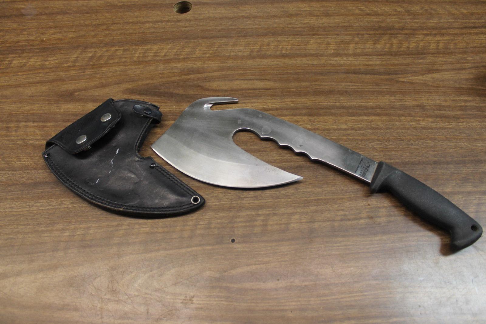 Step into the legacy of Norse warriors with this Original Viking Raider Axe, a versatile and battle-ready hatchet crafted in Japan. Measuring over 15 inches in length with a 7 3/4 inch blade, this axe is engineered for strength, precision, and durability. The 3/16-inch thick steel head features a large gut hook on the back and ergonomic finger indents, making it ideal for combat, heavy-duty chopping, or skinning tasks. Its razor-sharp edge surpasses most knives, so caution is essential when handling.The handle is made of Kraton, a hard rubber-like material, providing an exceptionally secure and comfortable grip. Designed as a full-tang construction, the stainless steel extends seamlessly through the handle, ensuring maximum stability and strength. A thick, welted leather sheath is included, custom-shaped to fully protect the axe head, with three secure snaps to keep it safely in place.