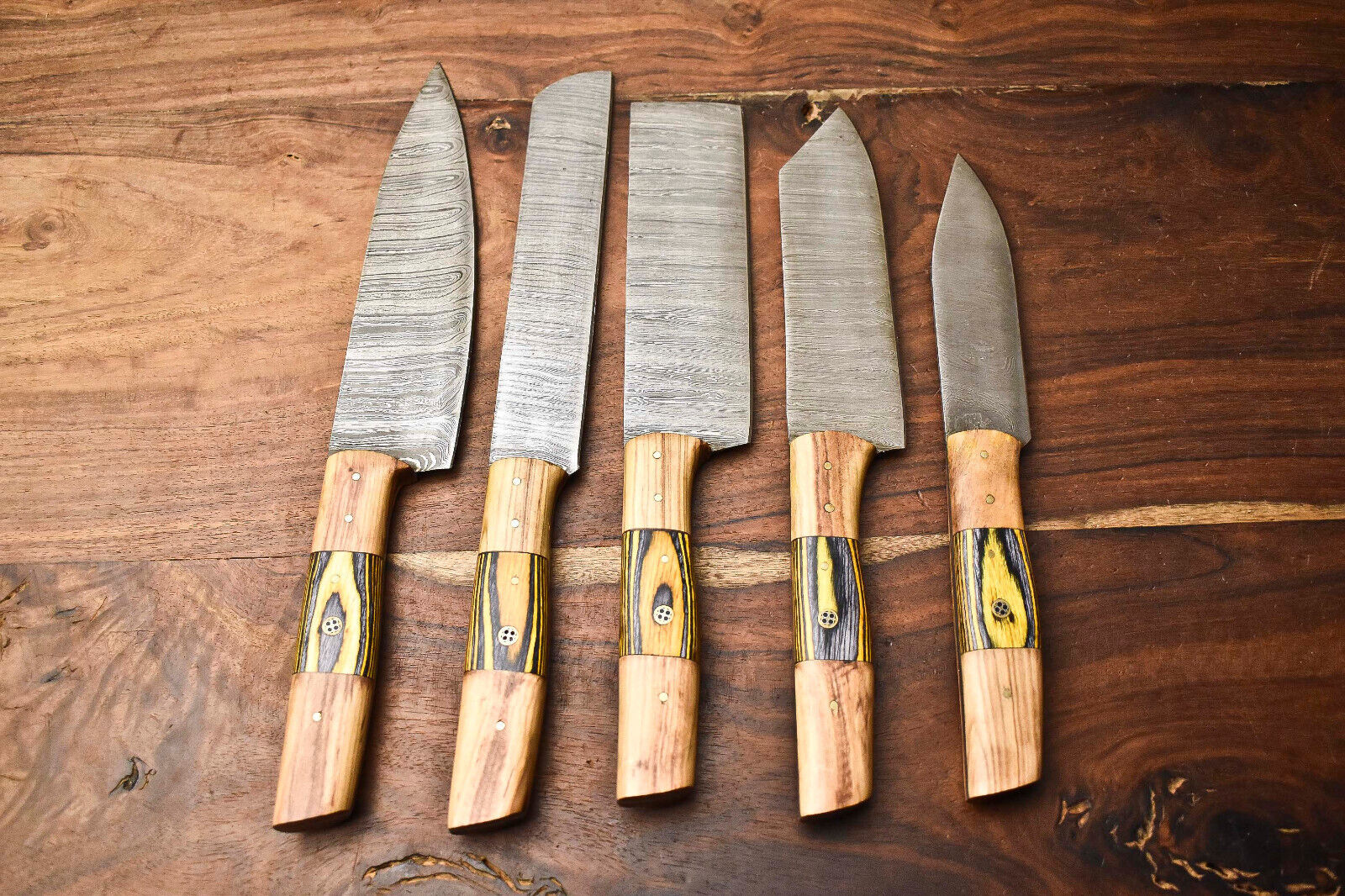 Premium Custom 5-Piece Handmade Damascus Steel Chef Knife Set – Rare Forged Blades