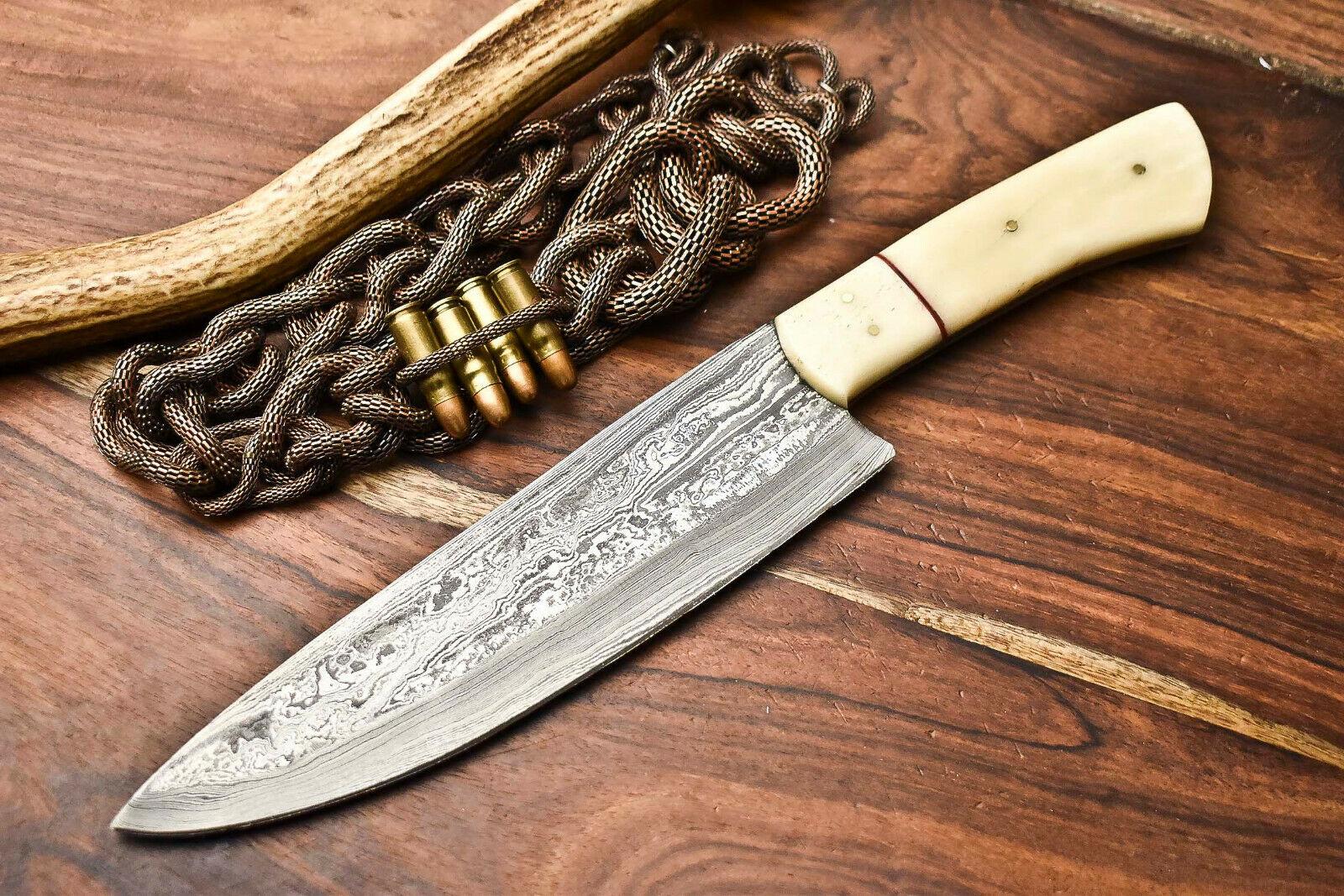Premium Hand Forged Damascus Steel Chef Knife | Camel Bone Handle | Full Tang Kitchen Blade