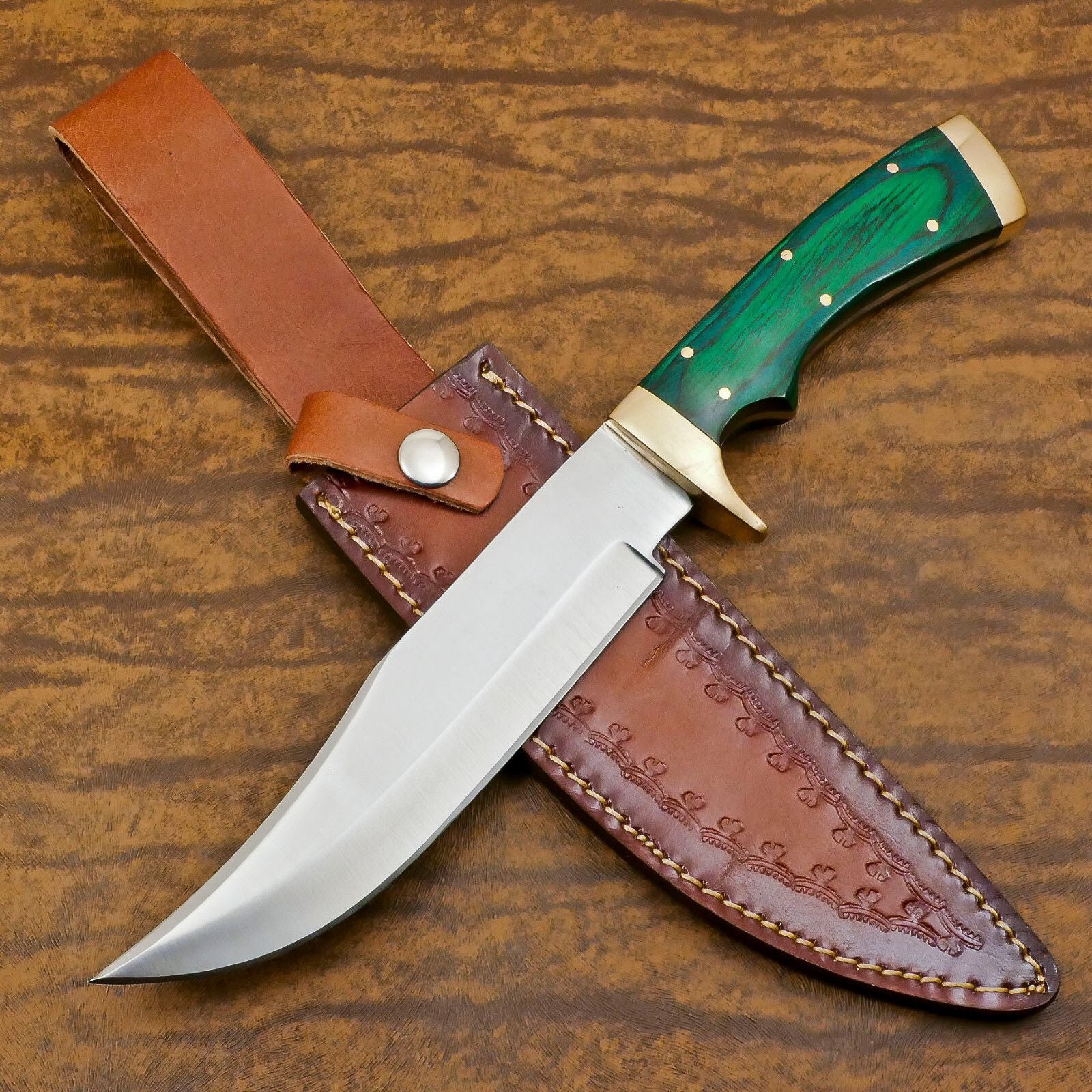 Prepare for all your outdoor adventures with our Premium Handmade D2 Steel Full Tang Bowie Knife, featuring a 12-inch robust blade designed for hunters, campers, and survival enthusiasts. Forged from high-quality D2 steel, this knife delivers exceptional hardness, long-lasting sharpness, and superior resistance to corrosion, making it a reliable tool for demanding outdoor tasks. Its full tang construction ensures maximum strength, balance, and durability, allowing you to chop, slice, and field dress game with confidence. The ergonomic handle provides a secure and comfortable grip, even during extended use in rugged conditions. Each knife is meticulously handcrafted, making every piece unique and reflecting exceptional artisan quality. This versatile 12-inch bowie knife comes with a durable sheath for safe storage and convenient transport, ideal for camping trips, hunting excursions, or survival situations. Combining functionality, durability, and aesthetic appeal, this handmade D2 steel bowie knife is not only a practical tool but also a striking addition to any knife collection. Whether you are exploring the wilderness, preparing for survival, or adding a handcrafted blade to your collection, this knife offers strength, precision, and reliability in every outdoor adventure.