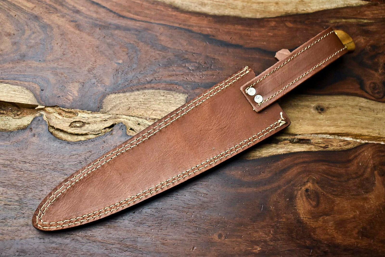 This chef knife is full tang, ensuring superior strength, balance, and control during use. Its razor-sharp edge is expertly honed to handle precise cutting, slicing, and chopping with ease. The handle is hand-polished for comfort, durability, and elegance, complementing the blade’s artistry. Unlike factory-made knives, every piece is 100% handmade without CNC machines, highlighting true craftsmanship. Whether for professional chefs, cooking enthusiasts, or collectors, this Damascus steel kitchen knife is a functional work of art designed to elevate your culinary experience.