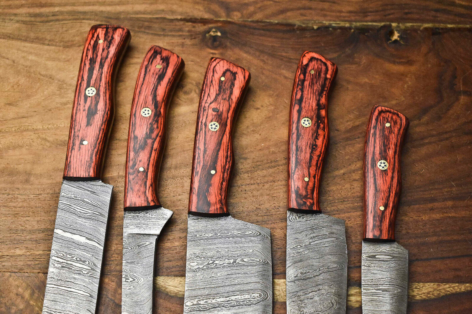 Premium Lot of 5 Handmade Hammered Damascus Steel Chef Knives